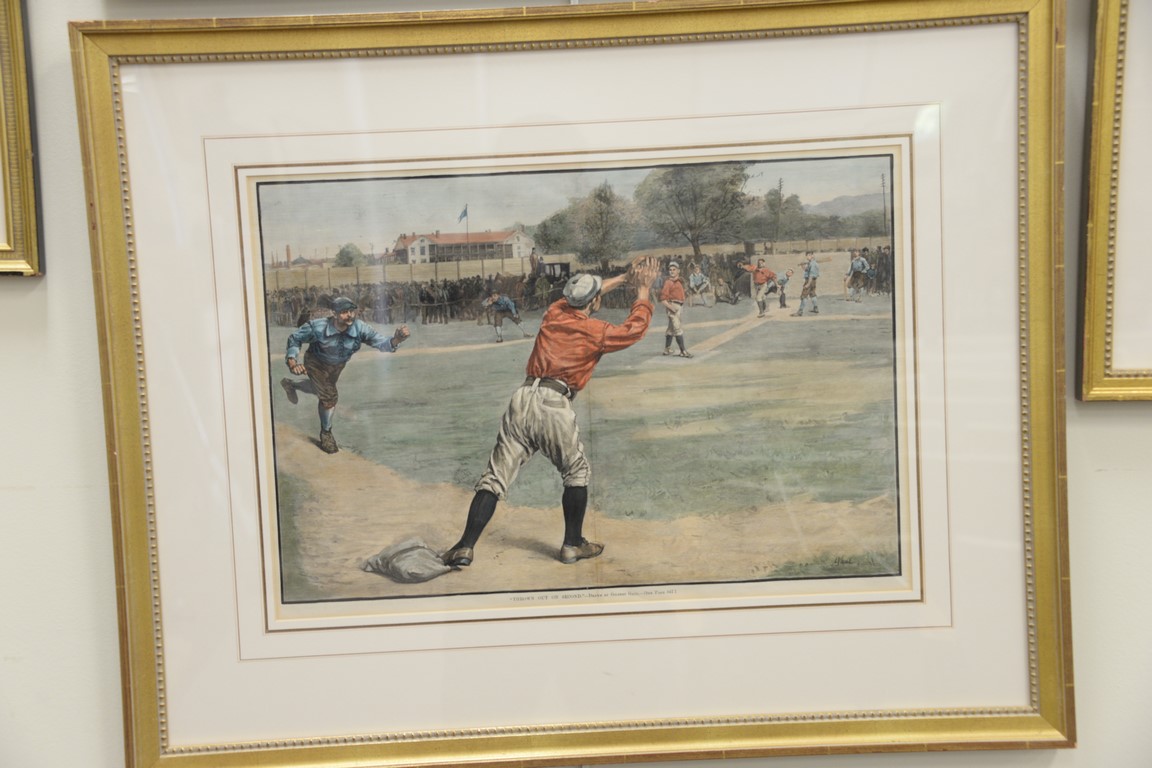 Six sporting Harper’s Weekly colored lithographs including three double page baseball and rowing, and three single page golf, hunting, and lawn tennis. ss 9 1/2 x 10 1/2 to 15 x 21 1/2 Provenance: Property from the Credit Suisse Americana Collection
