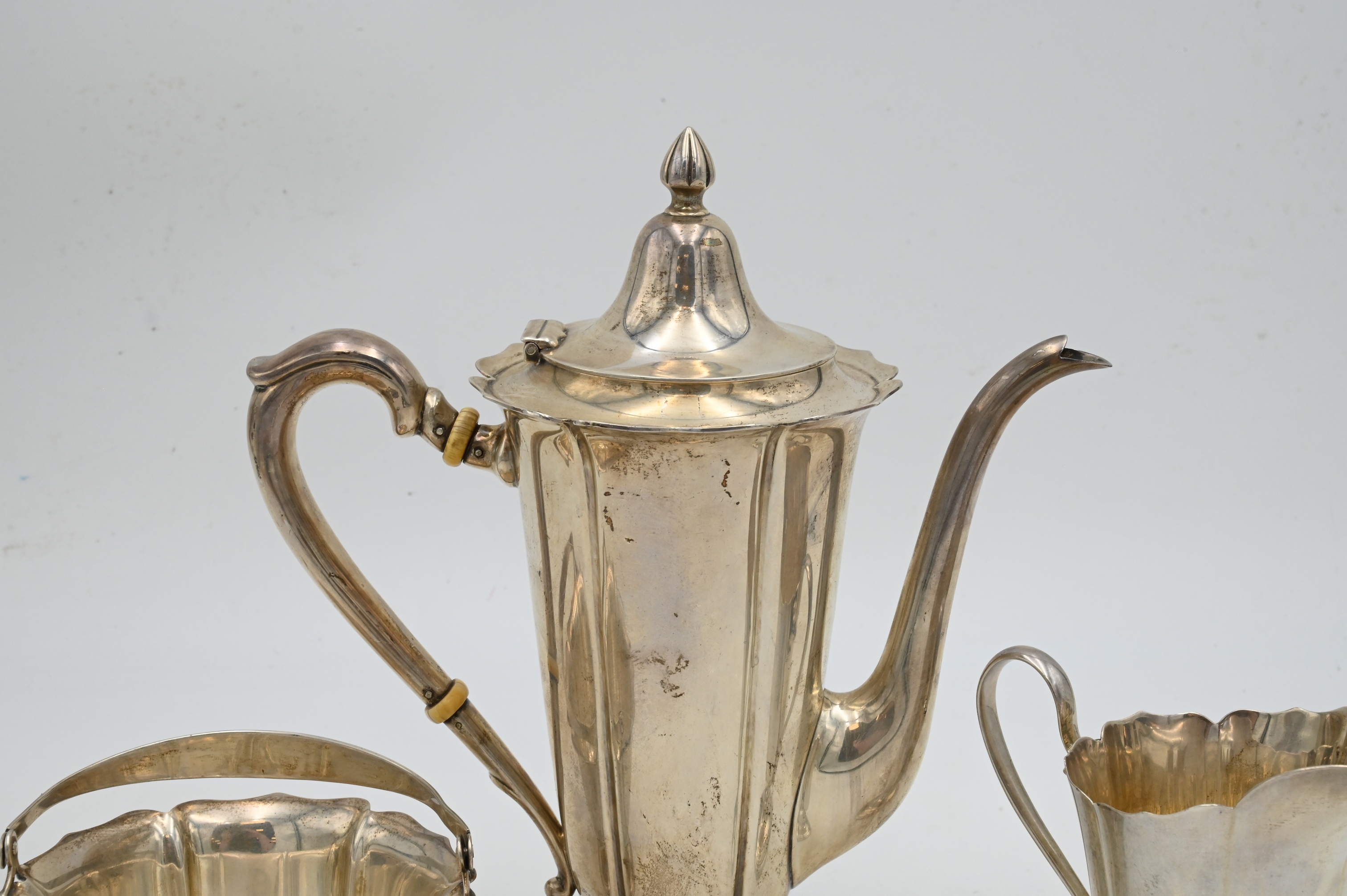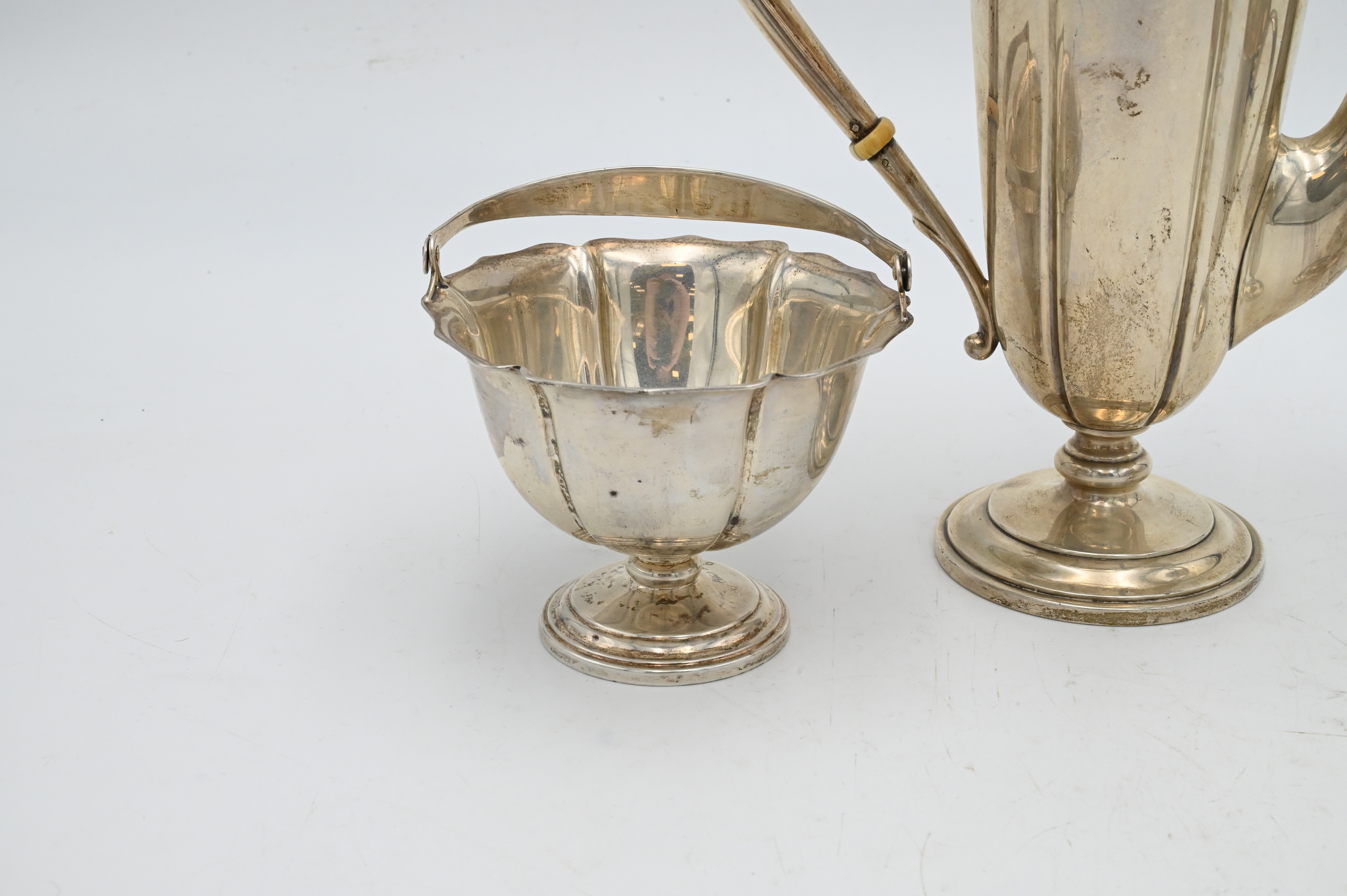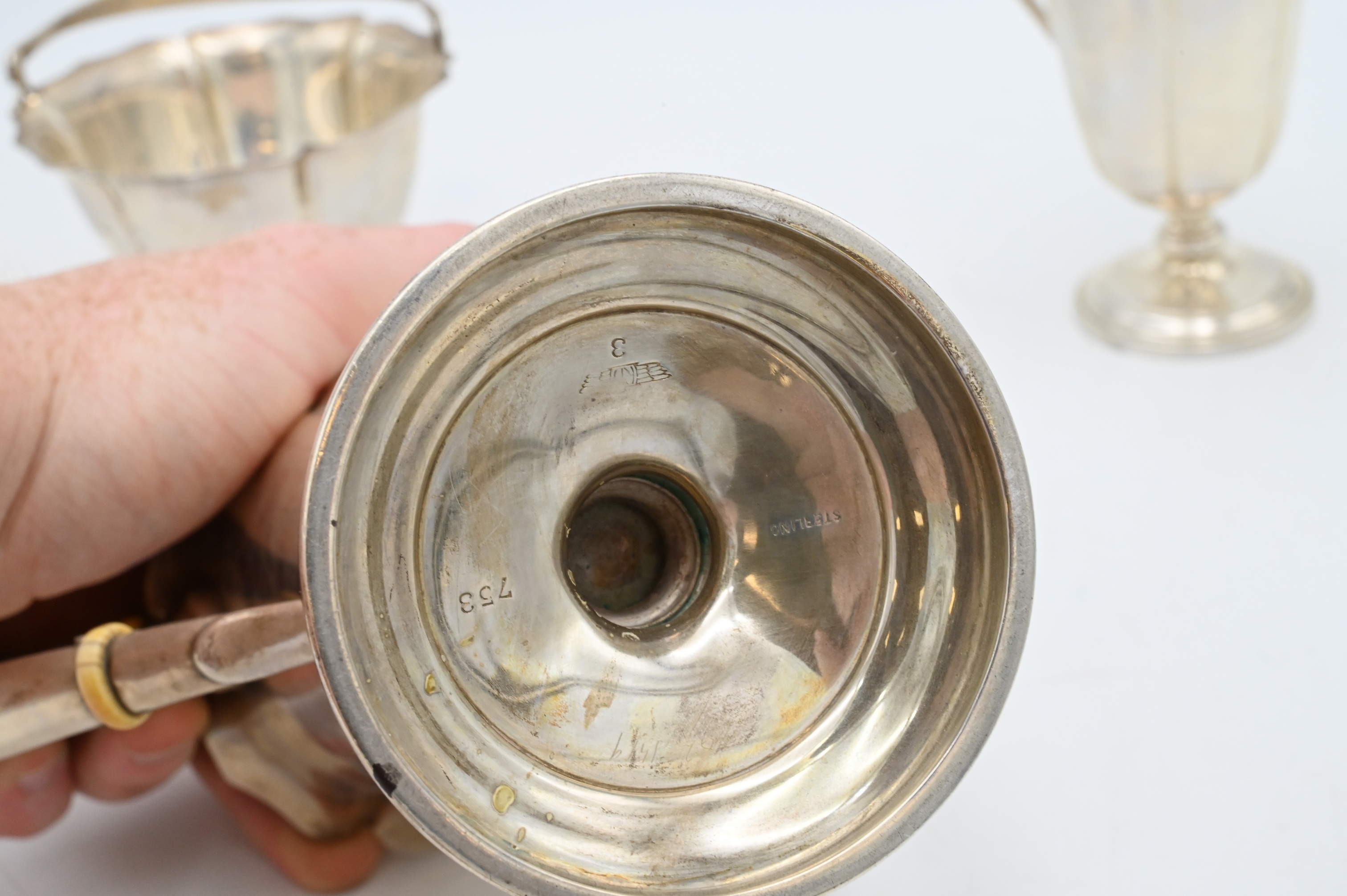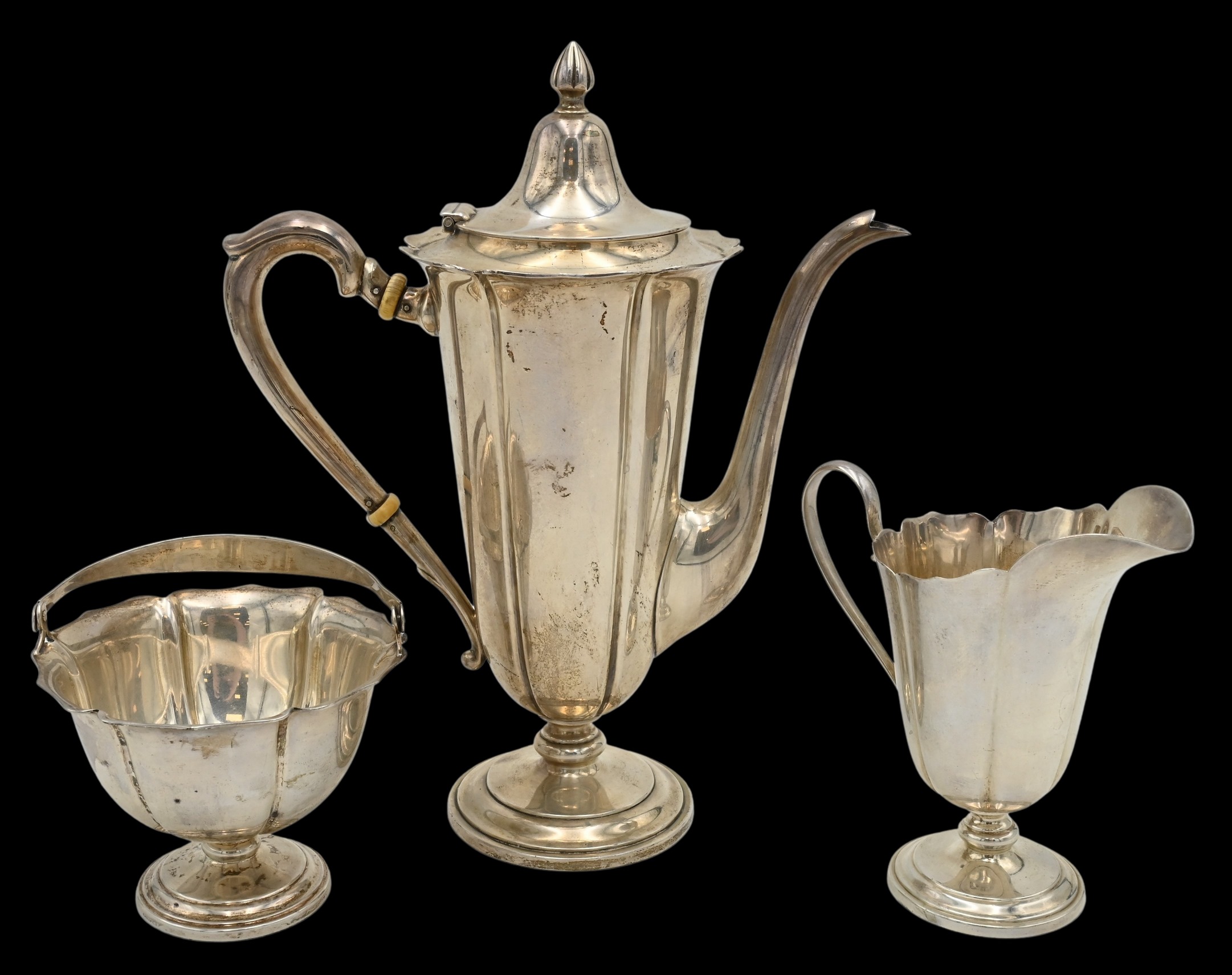 Three Piece Sterling Silver Tea Set, to include a teapot, height 9 inches, sugar bowl with handle, along with a creamer, 22.2 t.oz.