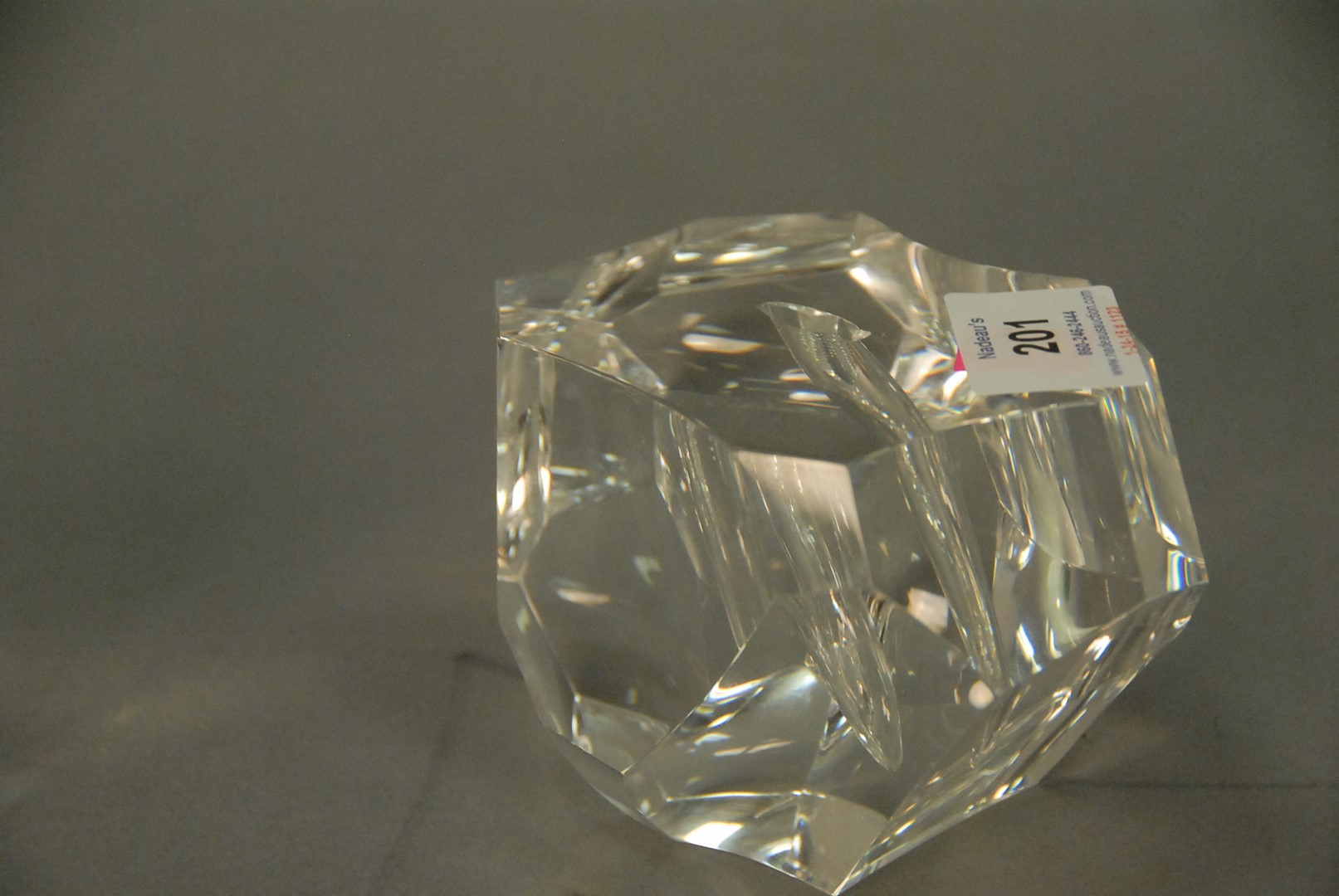 Lot 201: Two Steuben crystal paperweights, retired Heather Throb and a crystal inkwell in the form of a stone.