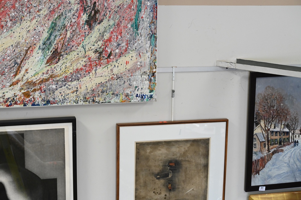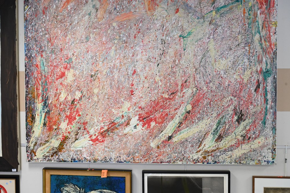 Lot 202: Bill Stewart Ainslie (1934 – 1989), Marsyas, circa 1983, acrylic on canvas, signed lower right Ainslie, 71″ x 96″.