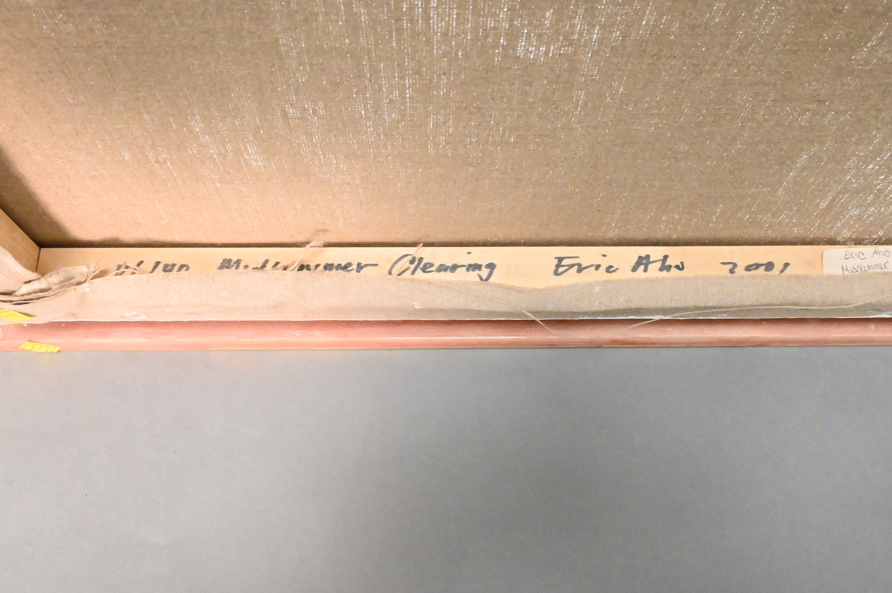 Signed lower center Eric Aho, signed, titled and date on stretcher