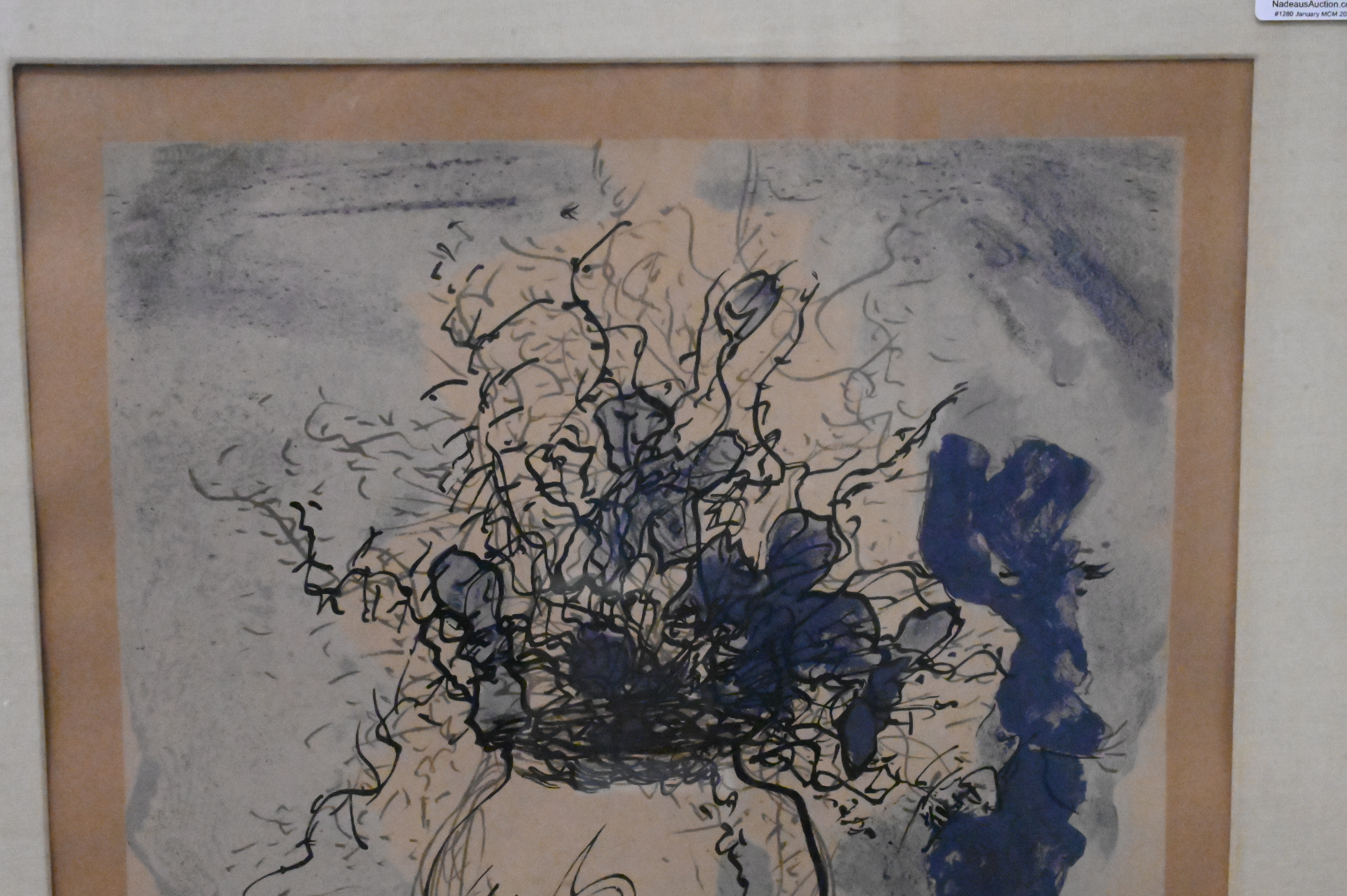 depicting a flowing bouquet rendered in Braque’s energetic late graphic style, with expressive ink contours layered over soft tonal washes.