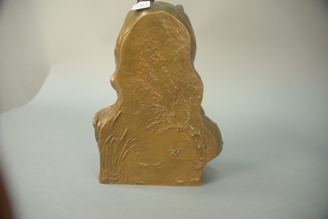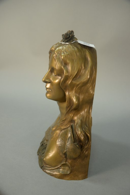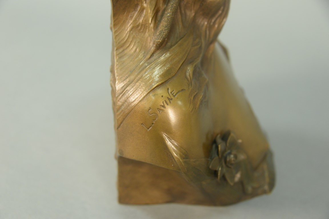Lot 202: Leopold Pierre Antoine Savine 1861-1934 Art Nouveau bronze bust Ophelia woman with flowers marked on right shoulder: L. Savi…