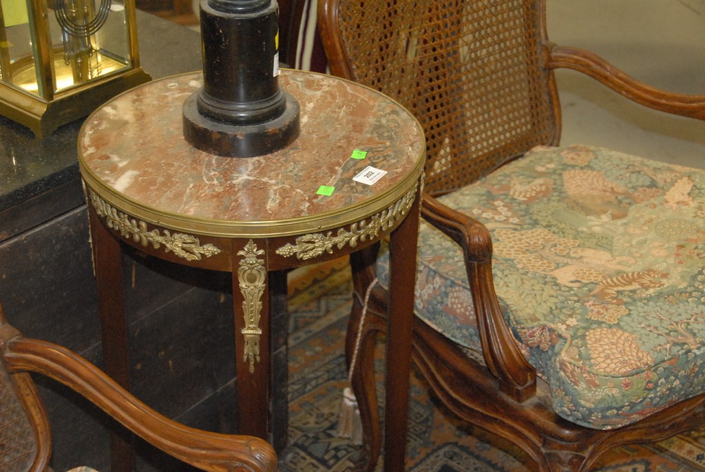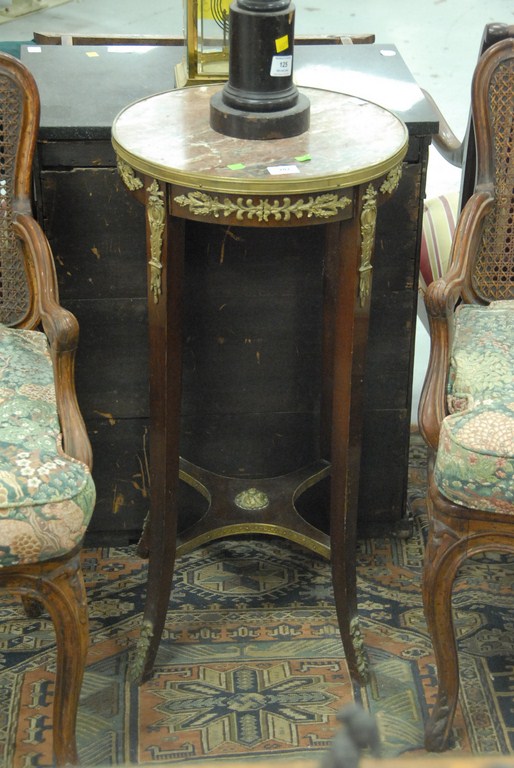 Lot 202: Louis XV style circular petite writing table en chiffonier supported on cabriole legs fitted gilt metal mounts and brass gallery, ea…