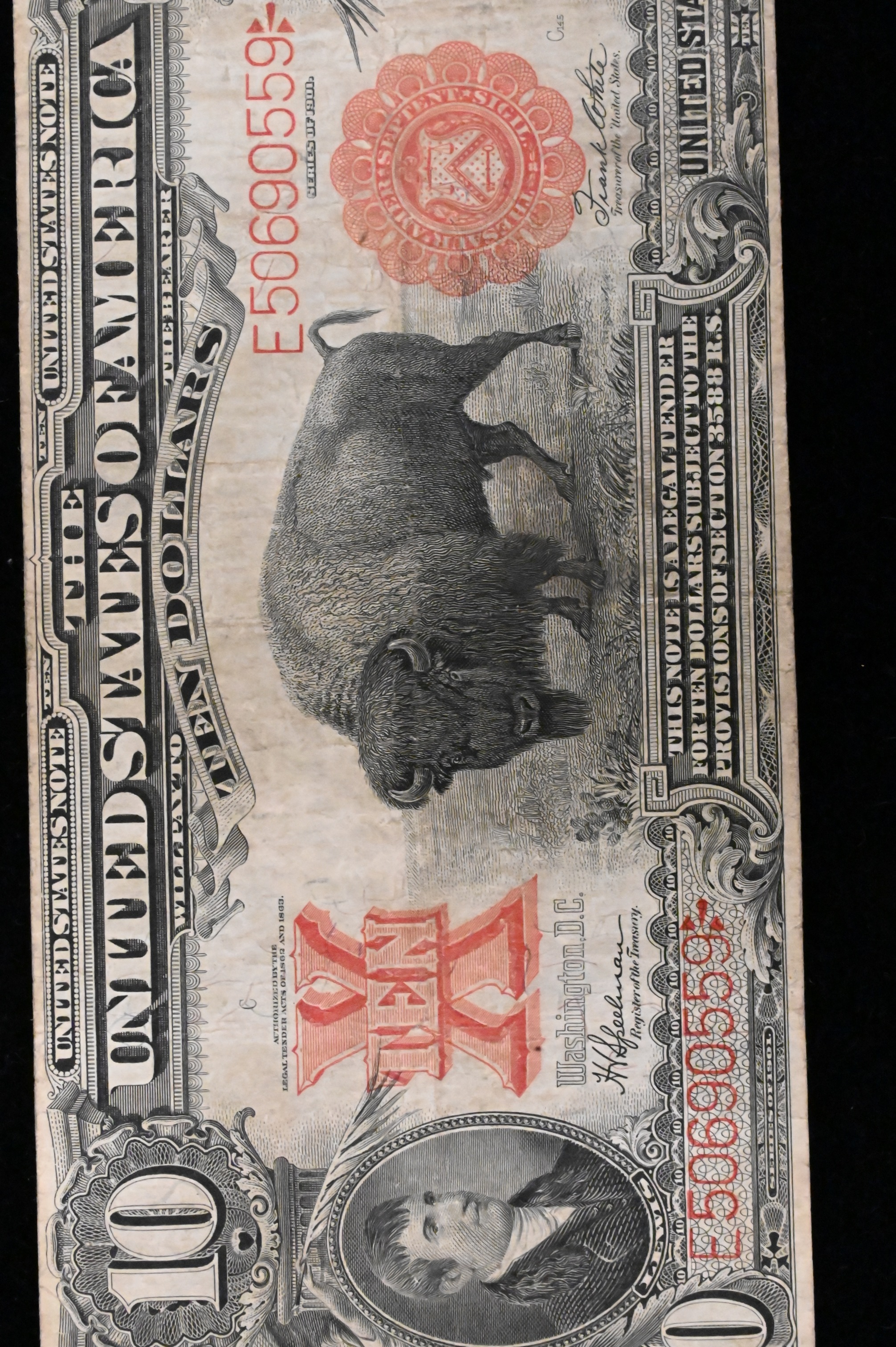 One $10 Dollar U.S. Note Large Size Bison FR122, in fine condition