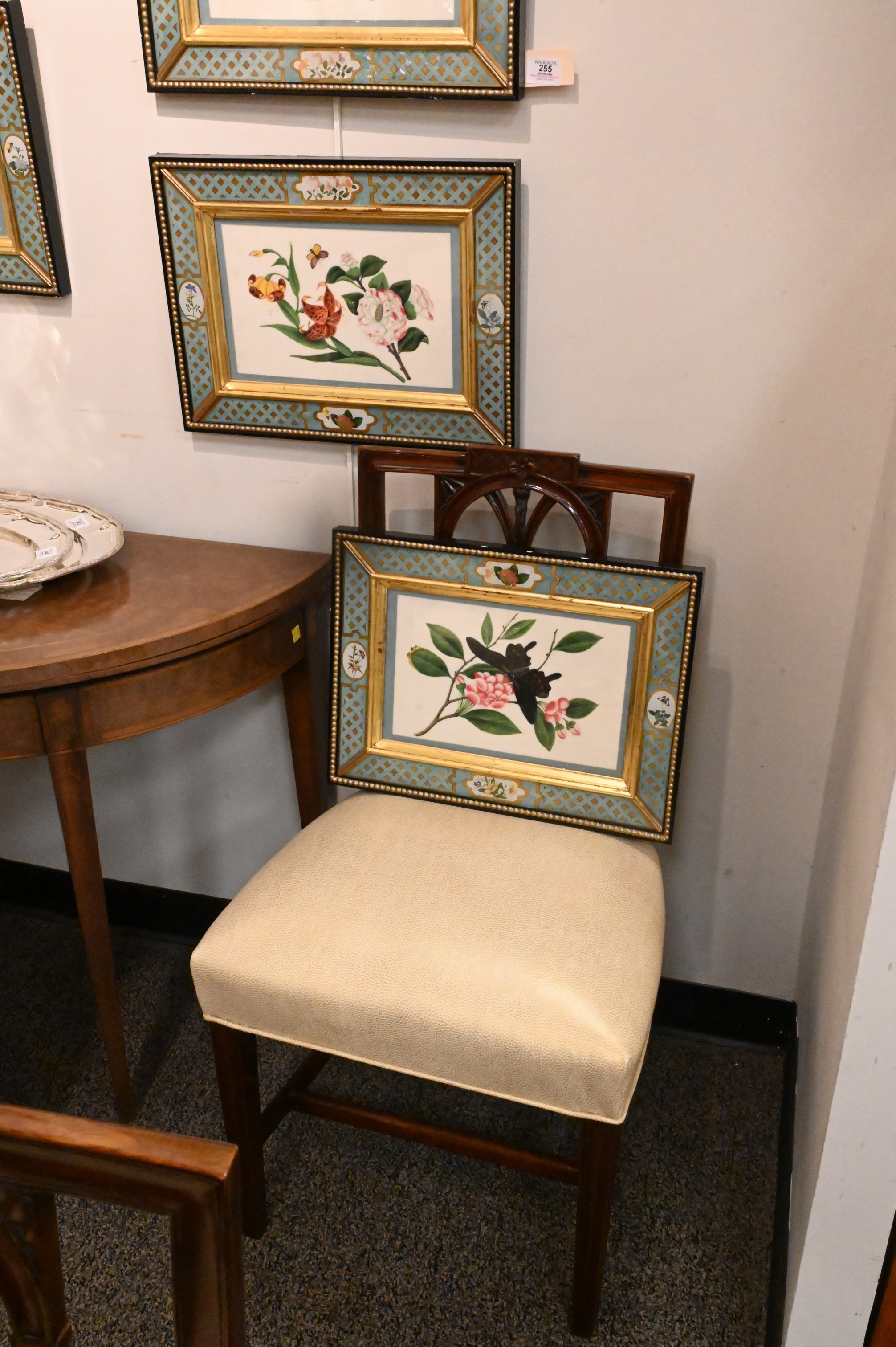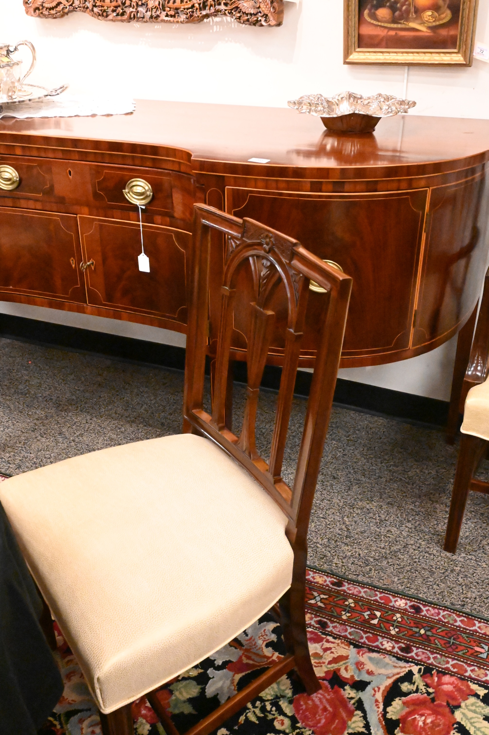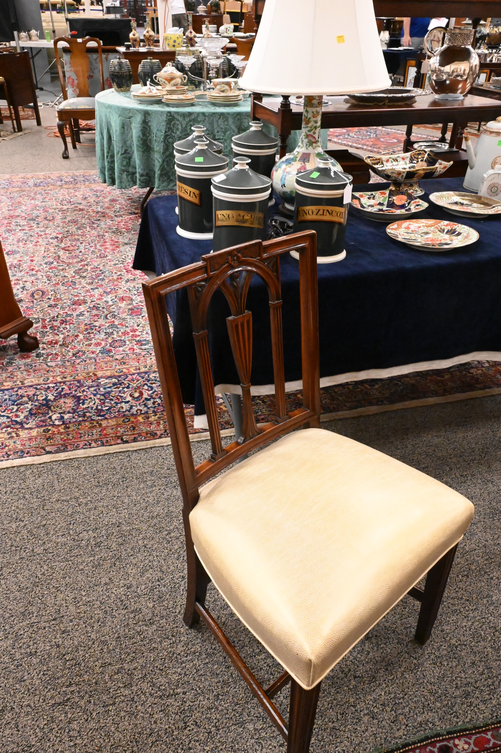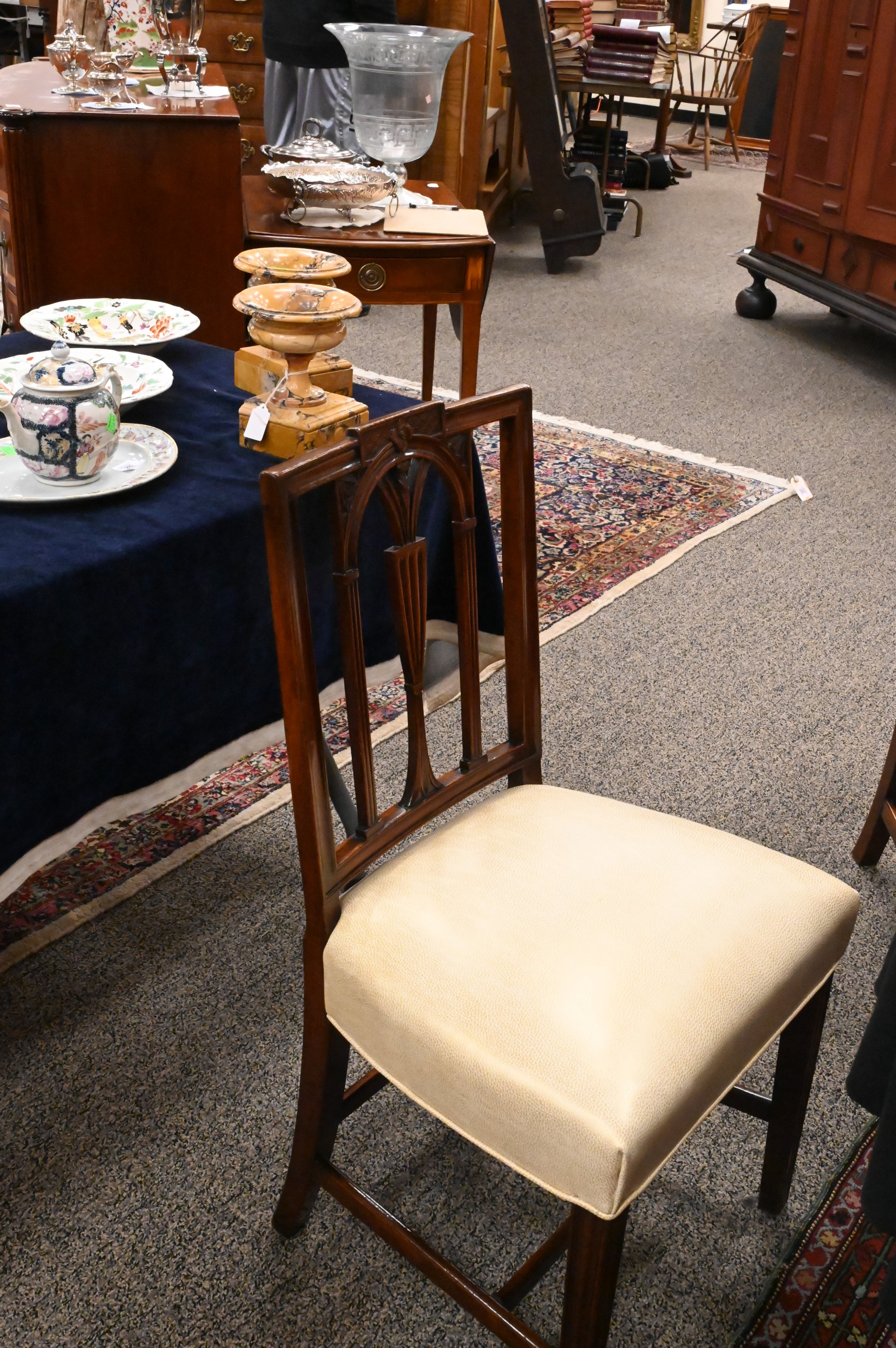 With custom textured leather full upholstered seats, all set on fluted tapered legs