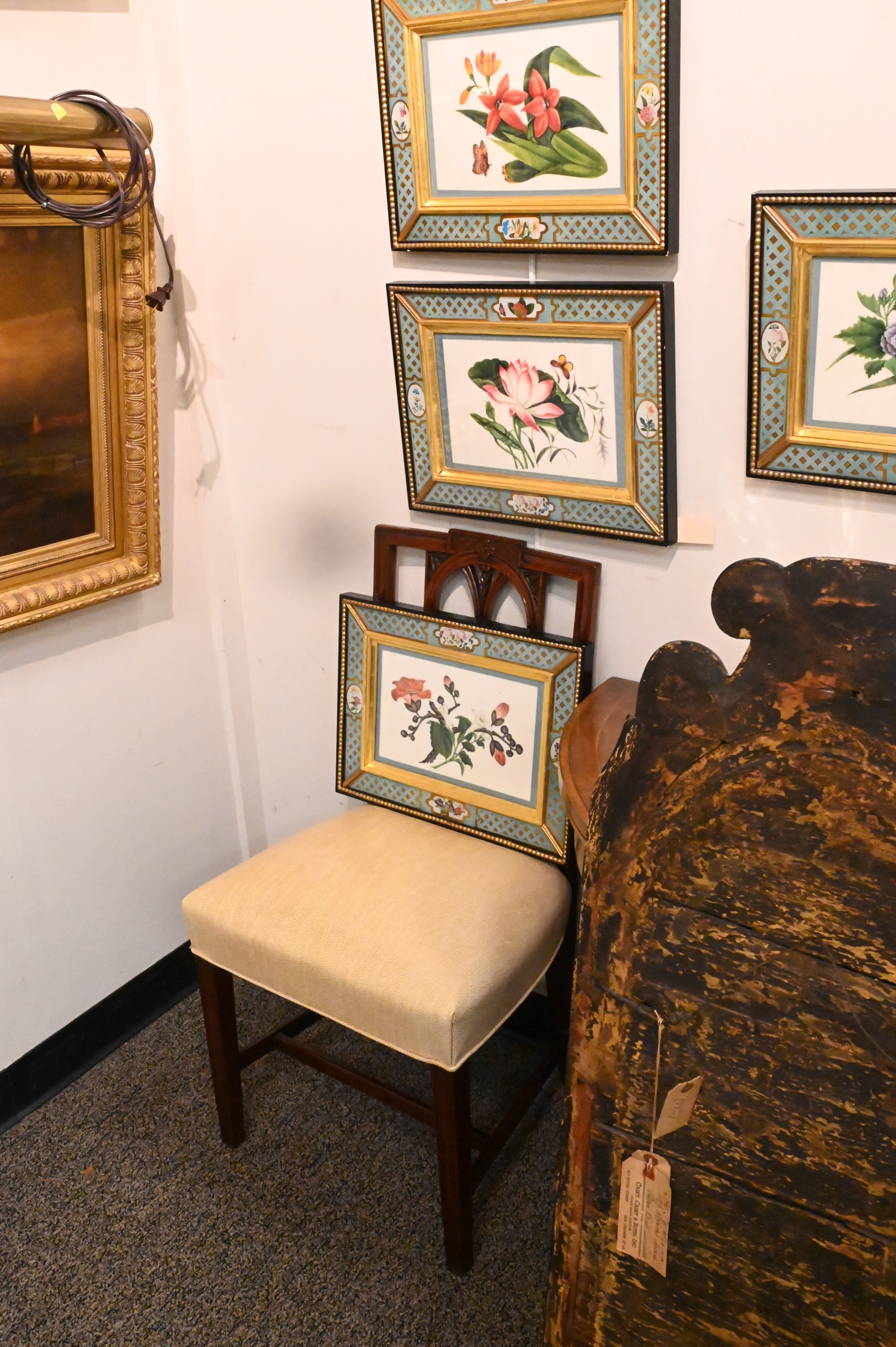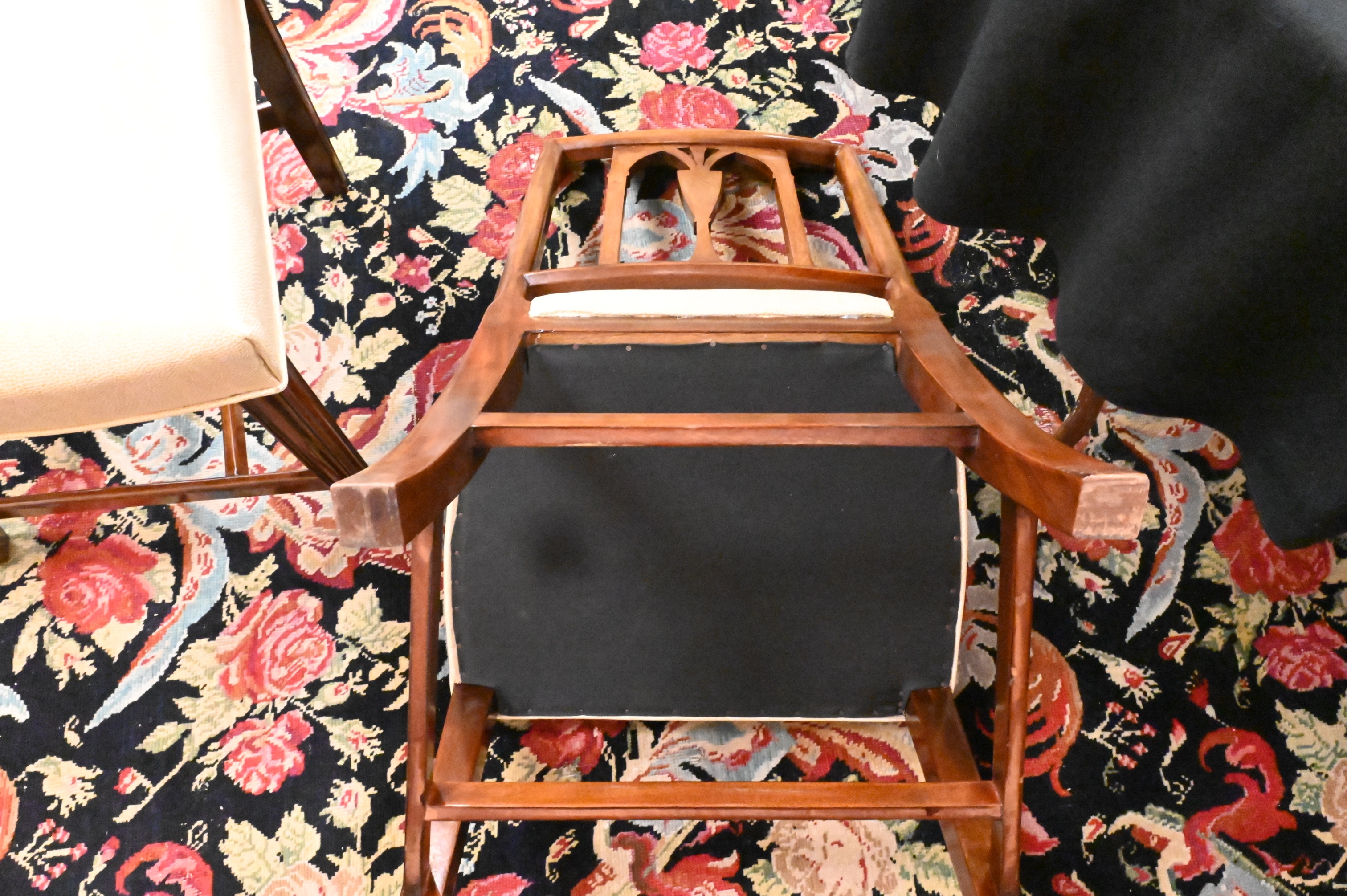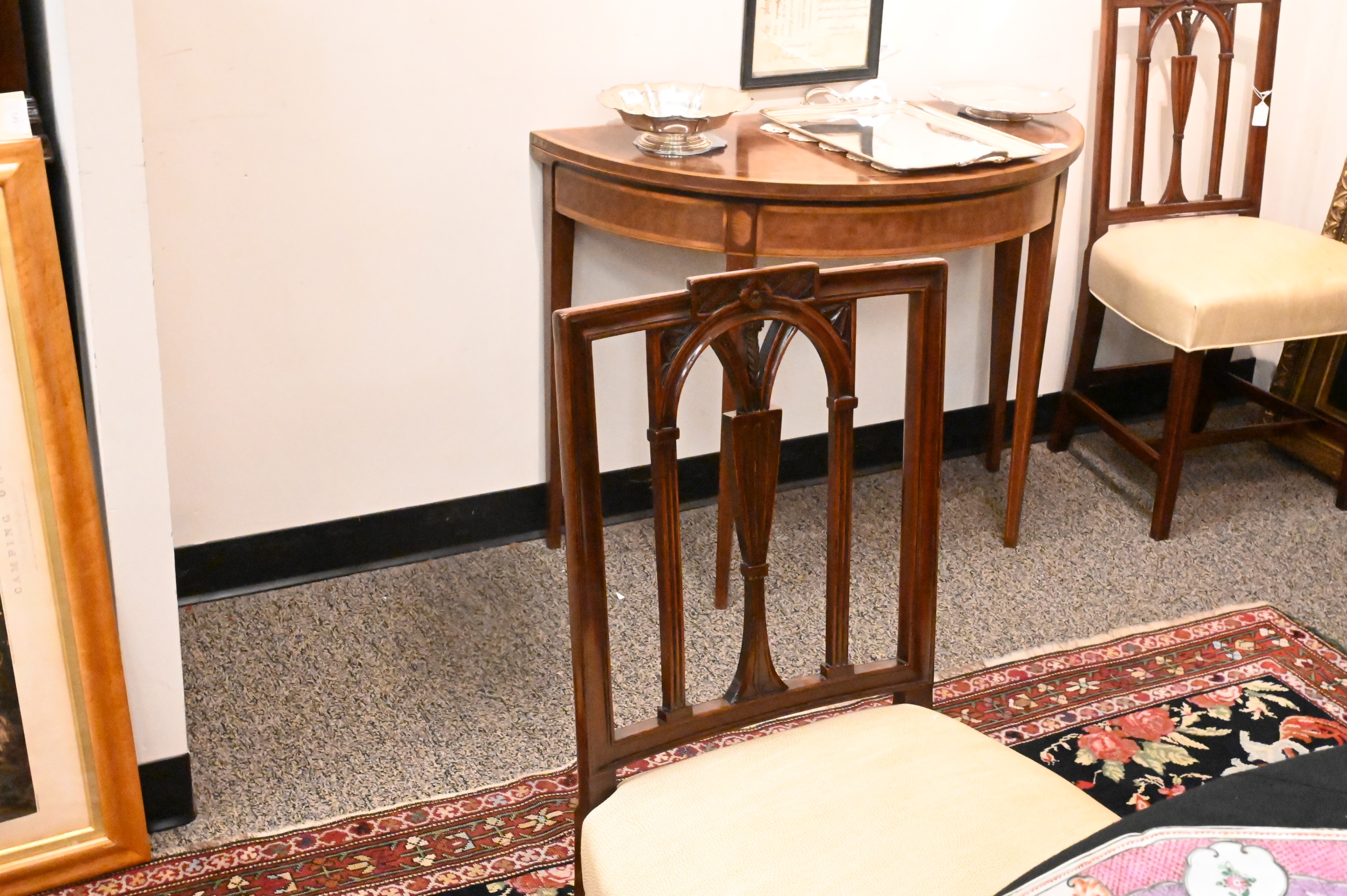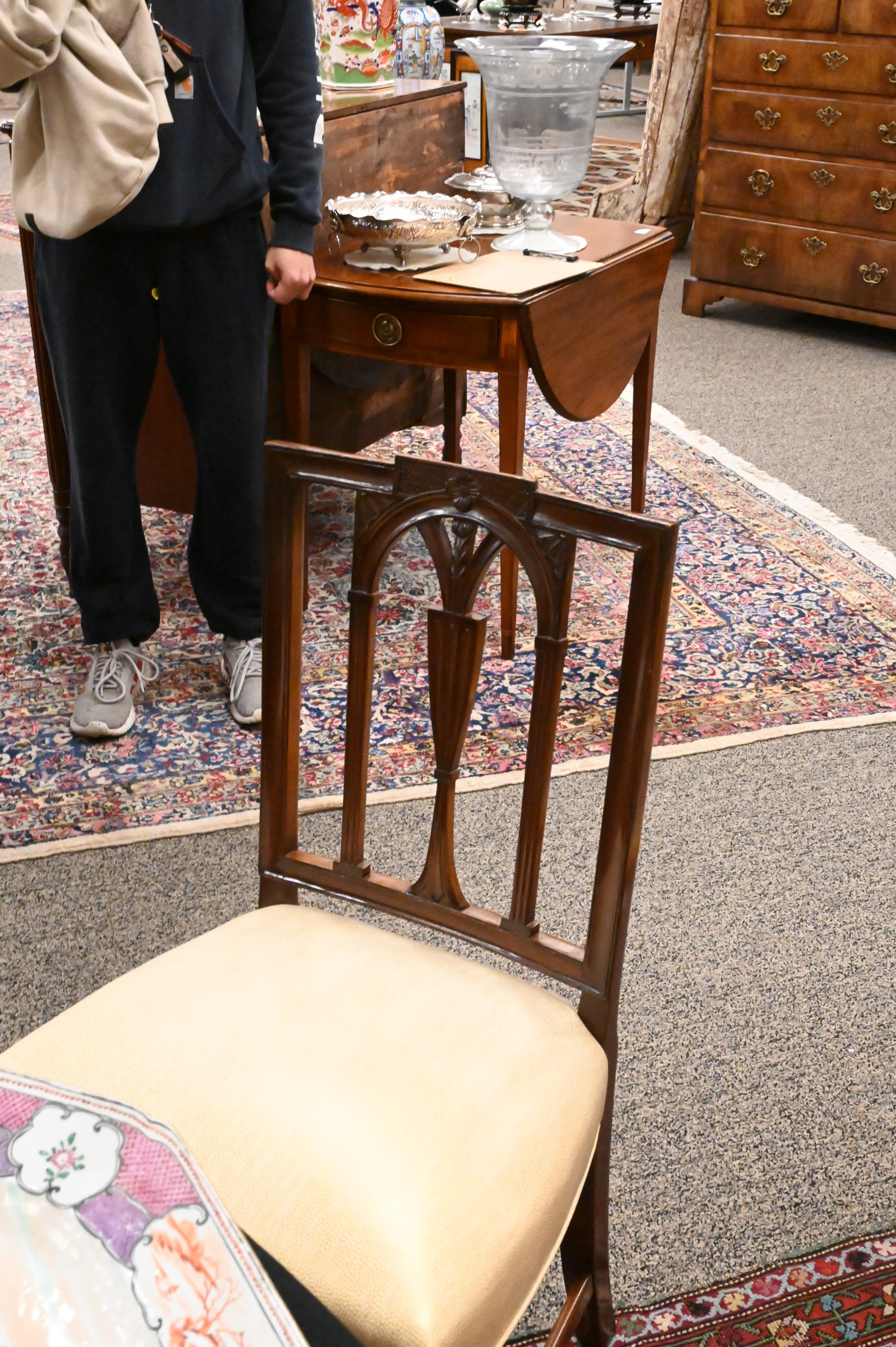 With custom textured leather full upholstered seats, all set on fluted tapered legs