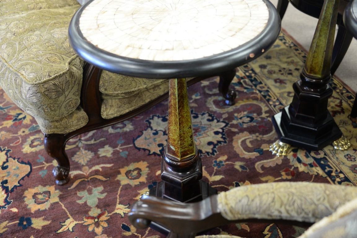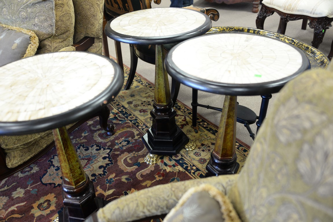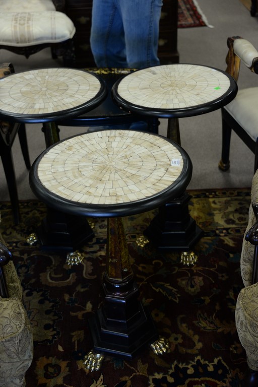 Set of three Contemporary stands having round top on bronze pedestal bases on claw feet, ht. 27in., dia. 18in.