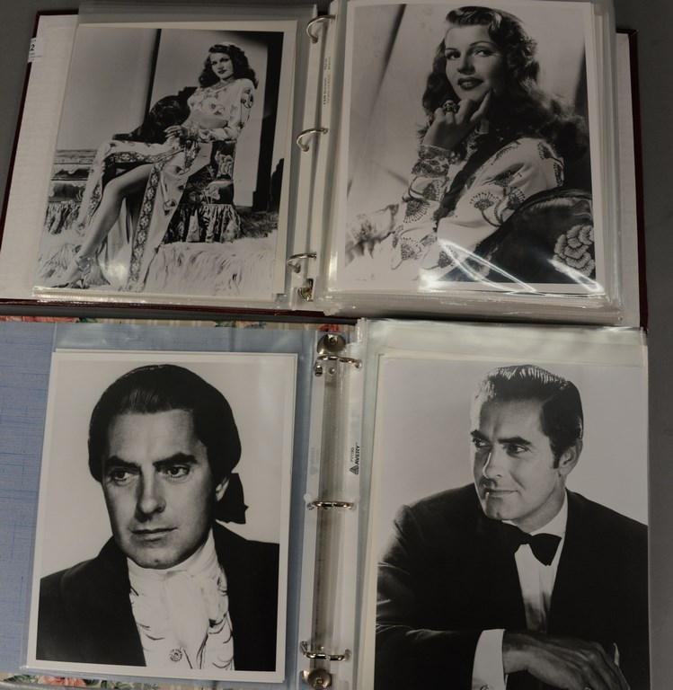 Two binders of unsigned photographs including 40 Esther Williams, 90 Linda Darnell, 40 Tyrone Power, 40 Elizabeth Taylor, and 100 Rita Hayworth.