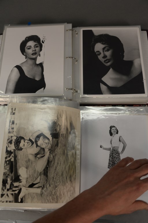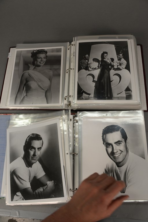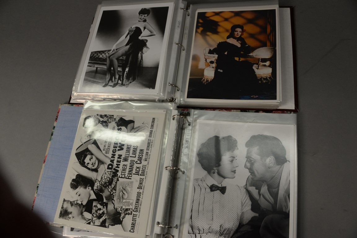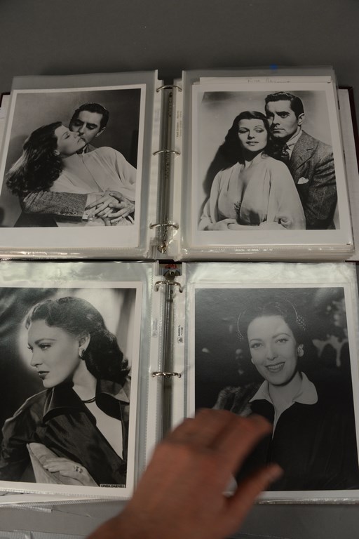 Lot 202: Two binders of unsigned photographs including 40 Esther Williams, 90 Linda Darnell, 40 Tyrone Power, 40 Elizabeth Taylor, and 100 Ri…
