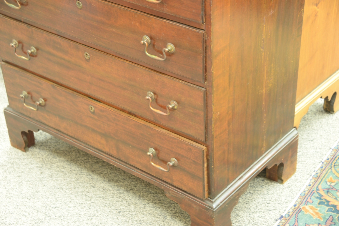 Five drawer Chippendale tall chest on bracket base, 18th century. ht. 46in., wd. 39in.