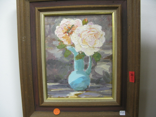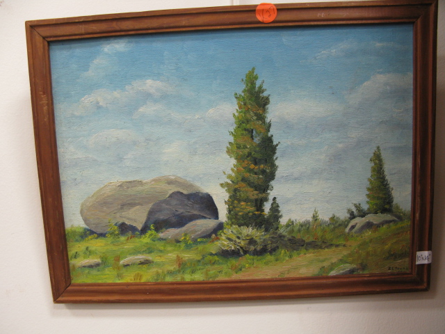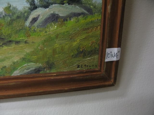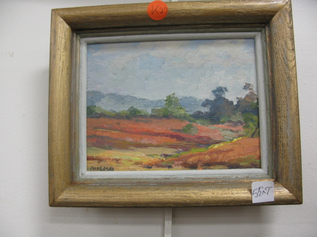 Group of four oil on board paintings, one signed Poplaski, two attributed to Poplaski and one signed E L Young