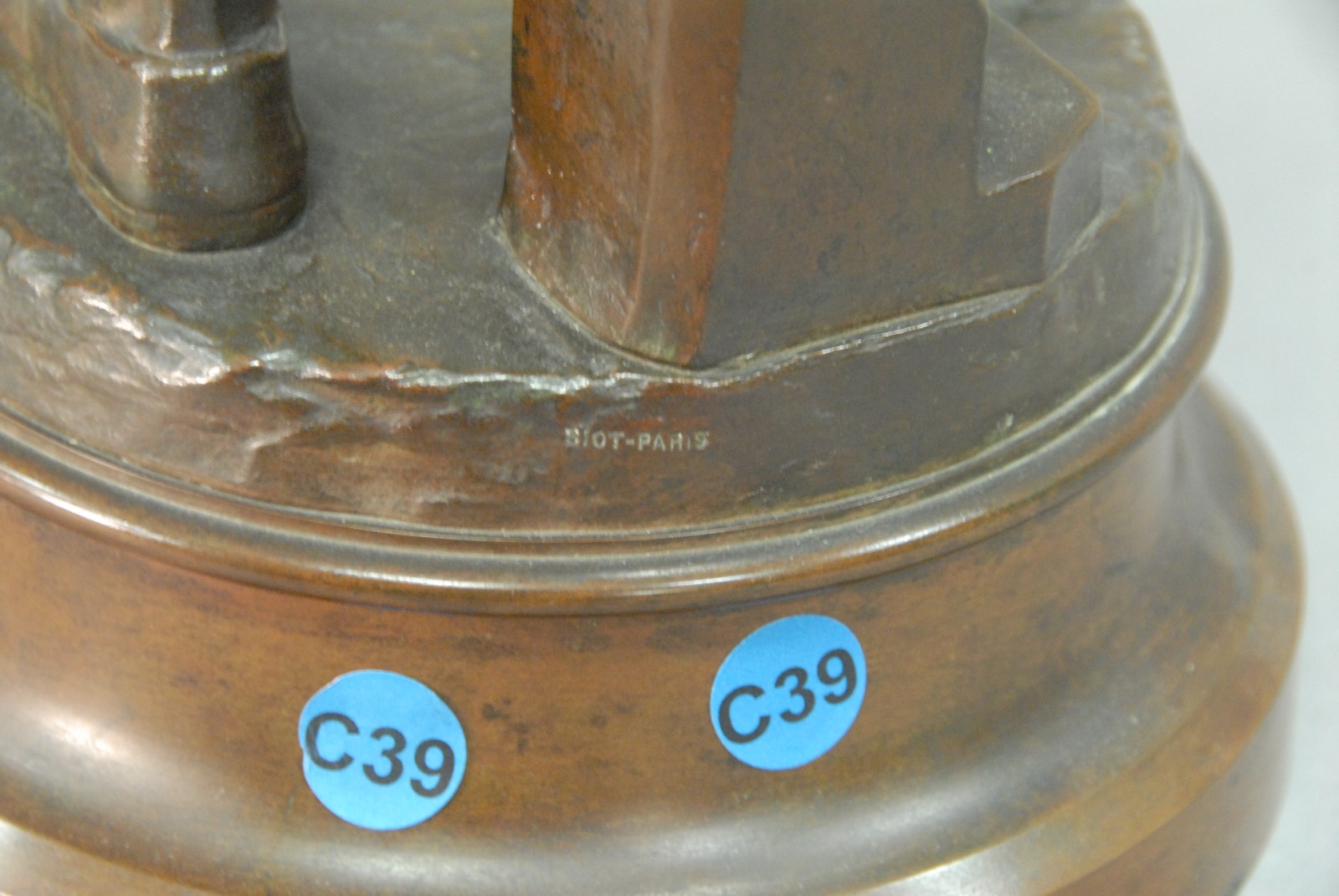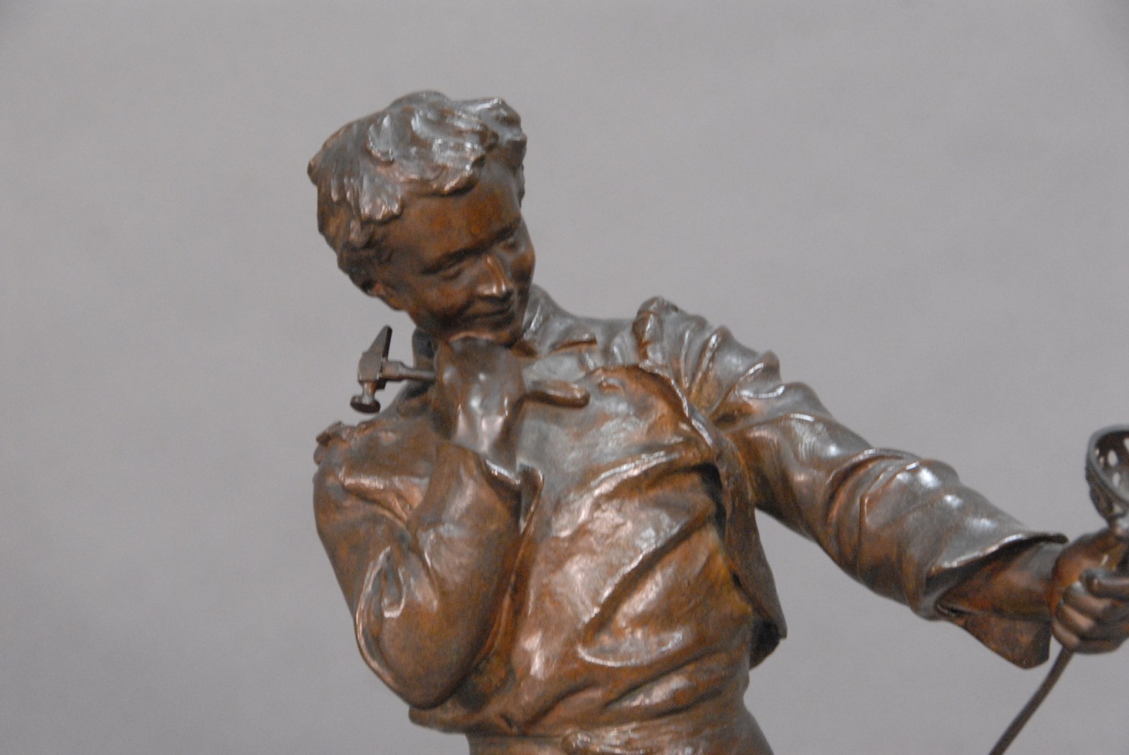 Henryk Kossowski 1855 – 1921 FIGURE OF A SWORD MAKER LOOKING AT HIS WORK bronze signed on base H. Kossowski.