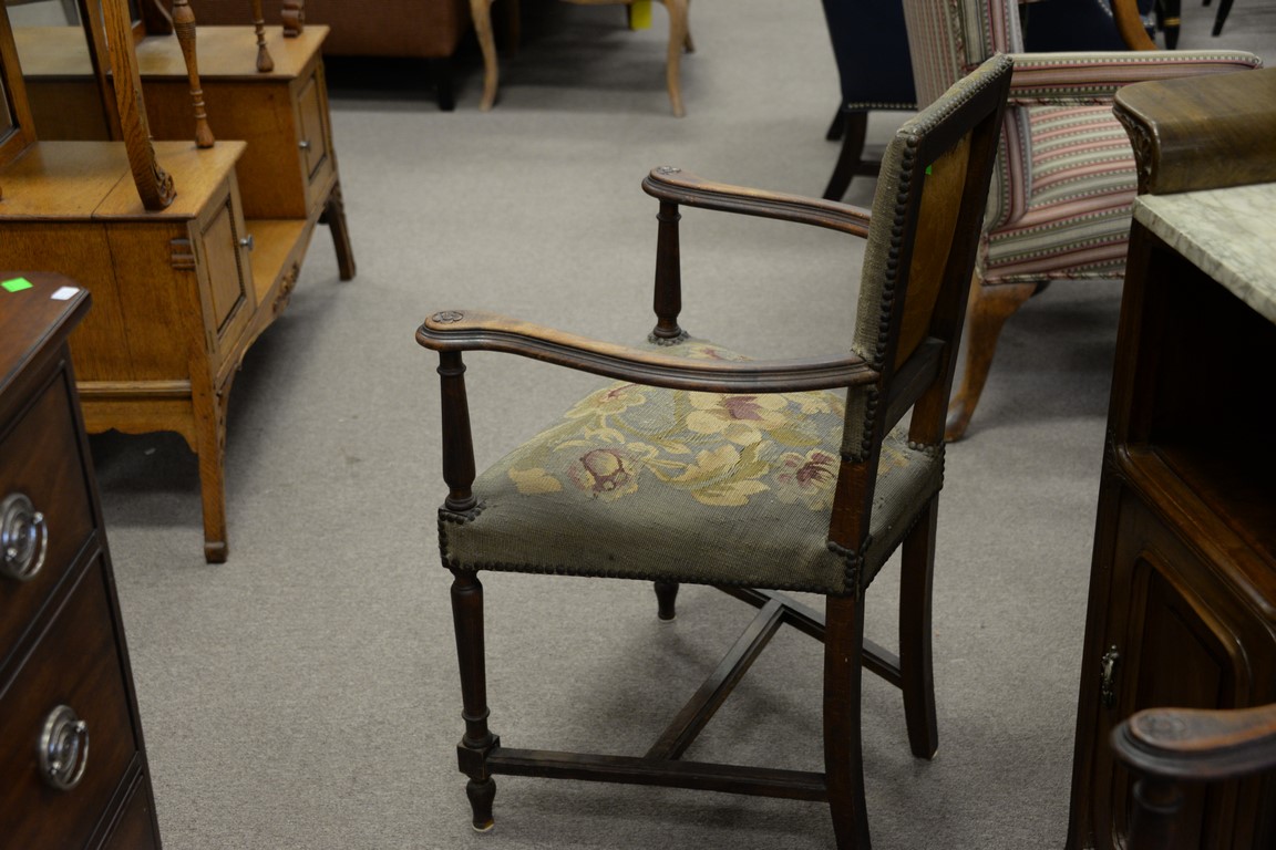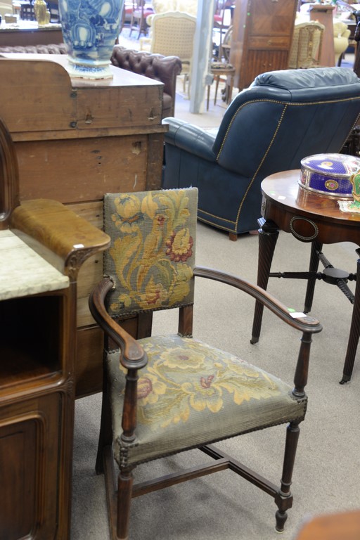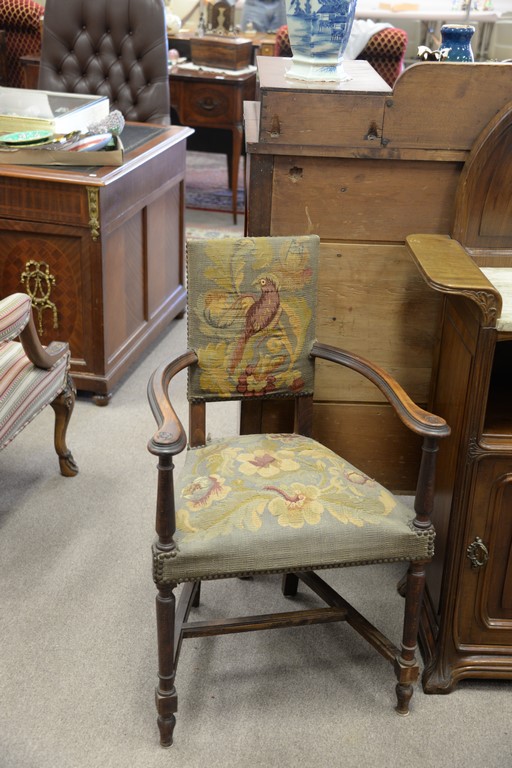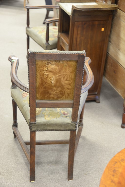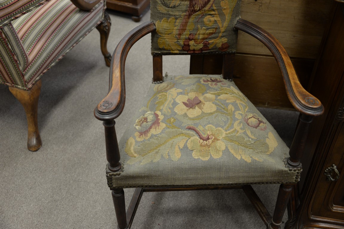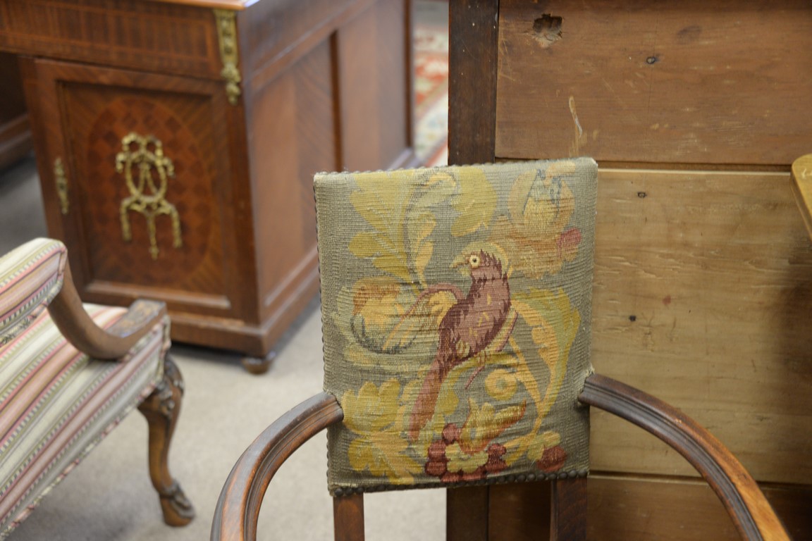 Lot 203: Pair of Continental style armchairs with Aubusson upholstery, Aubusson is 18th century or earlier.