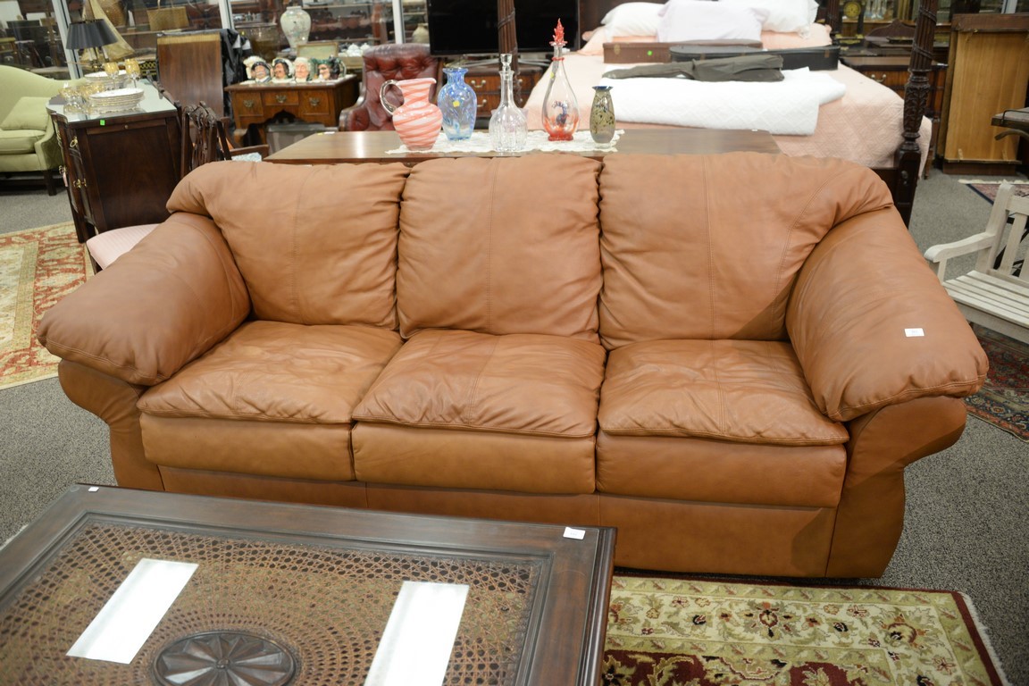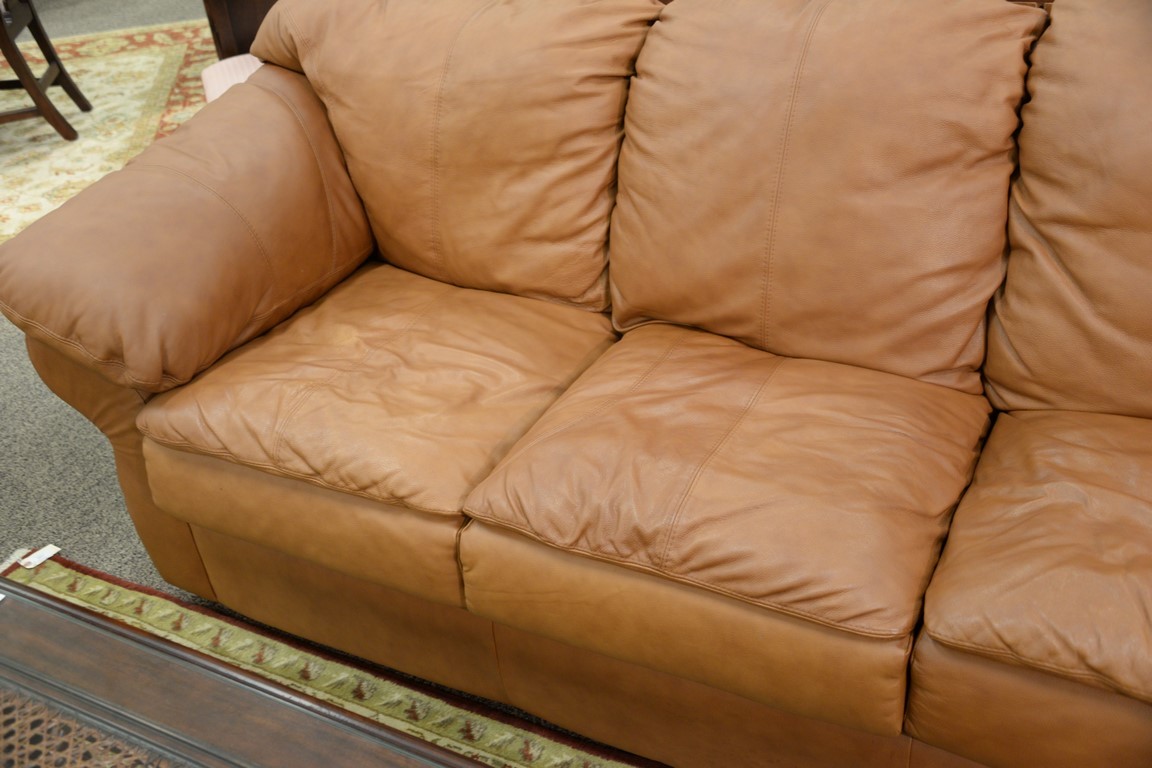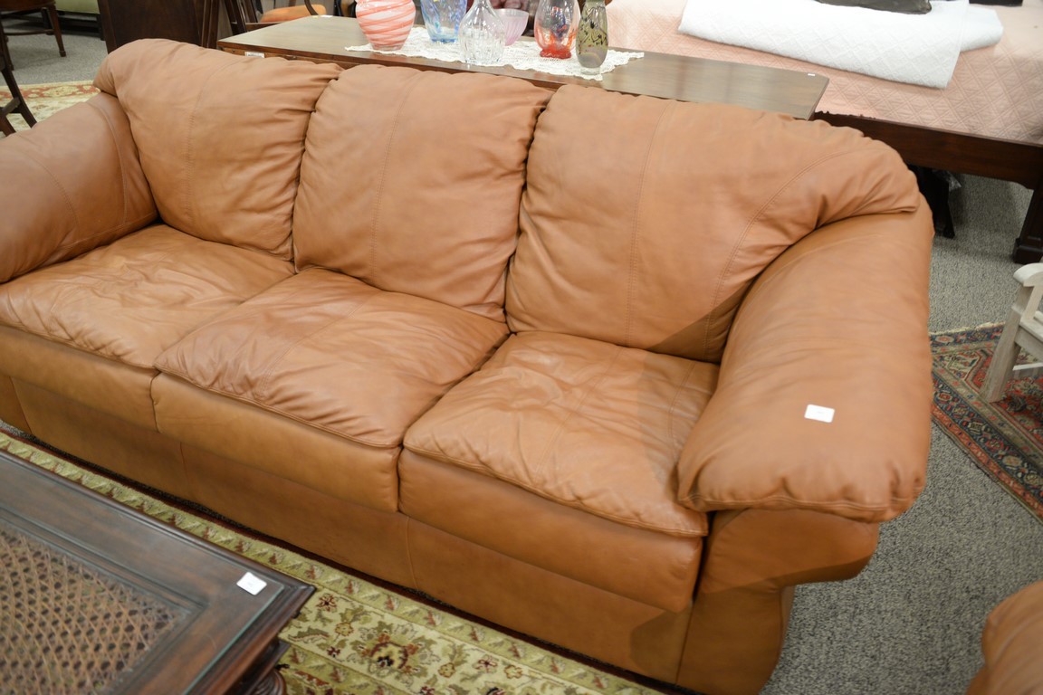 Sealy leather three cushion sofa bed. lg. 92in.