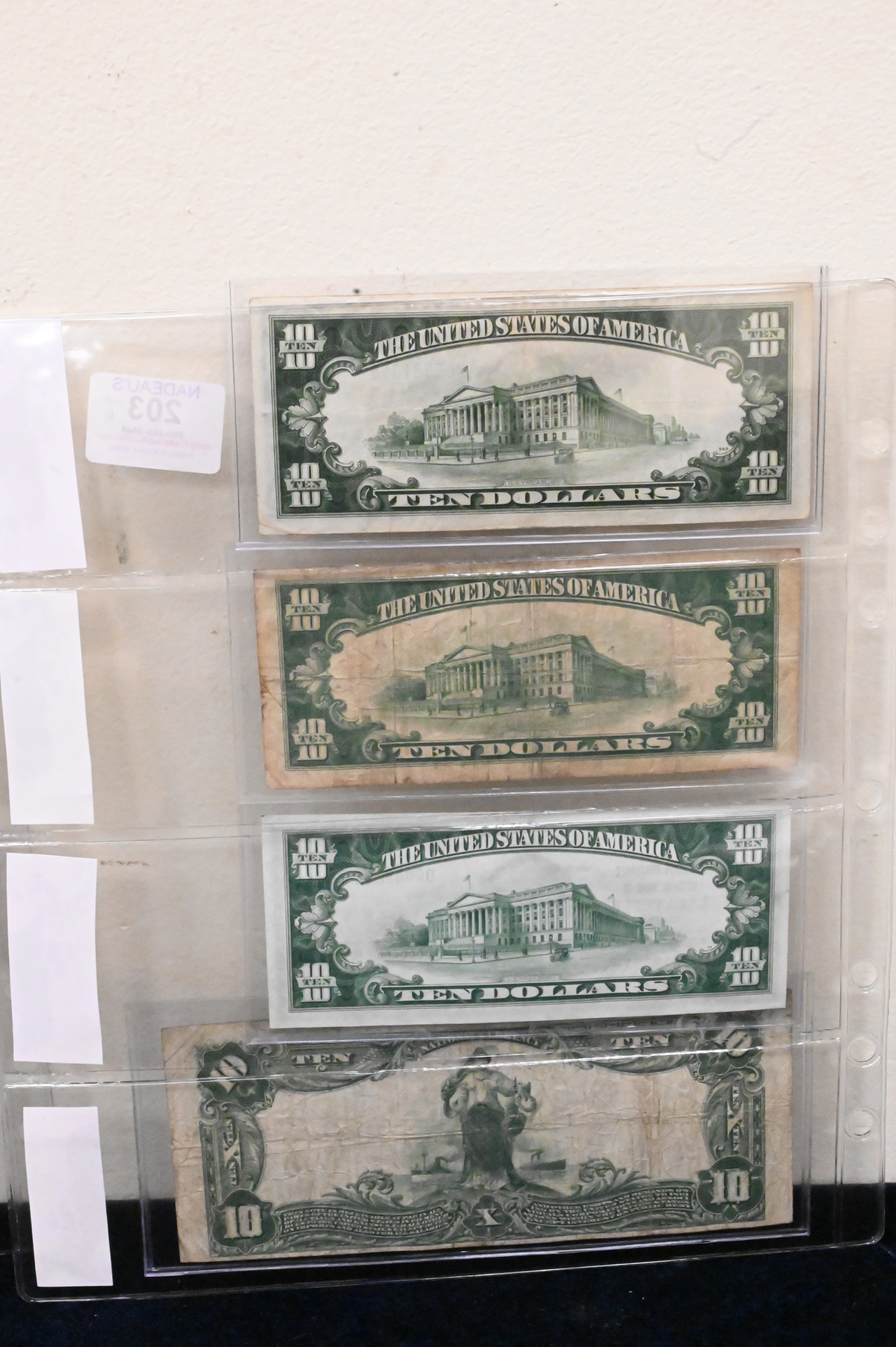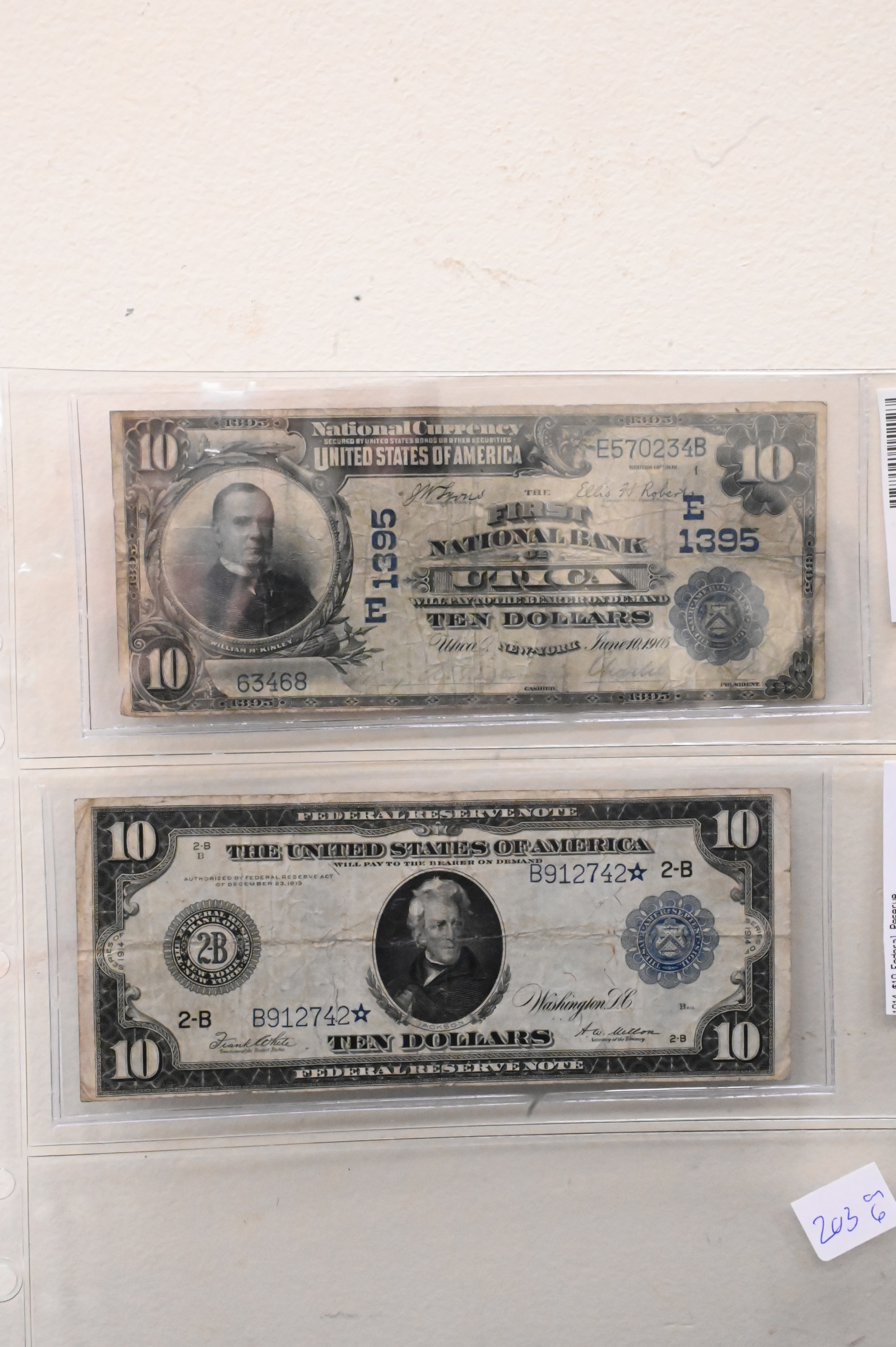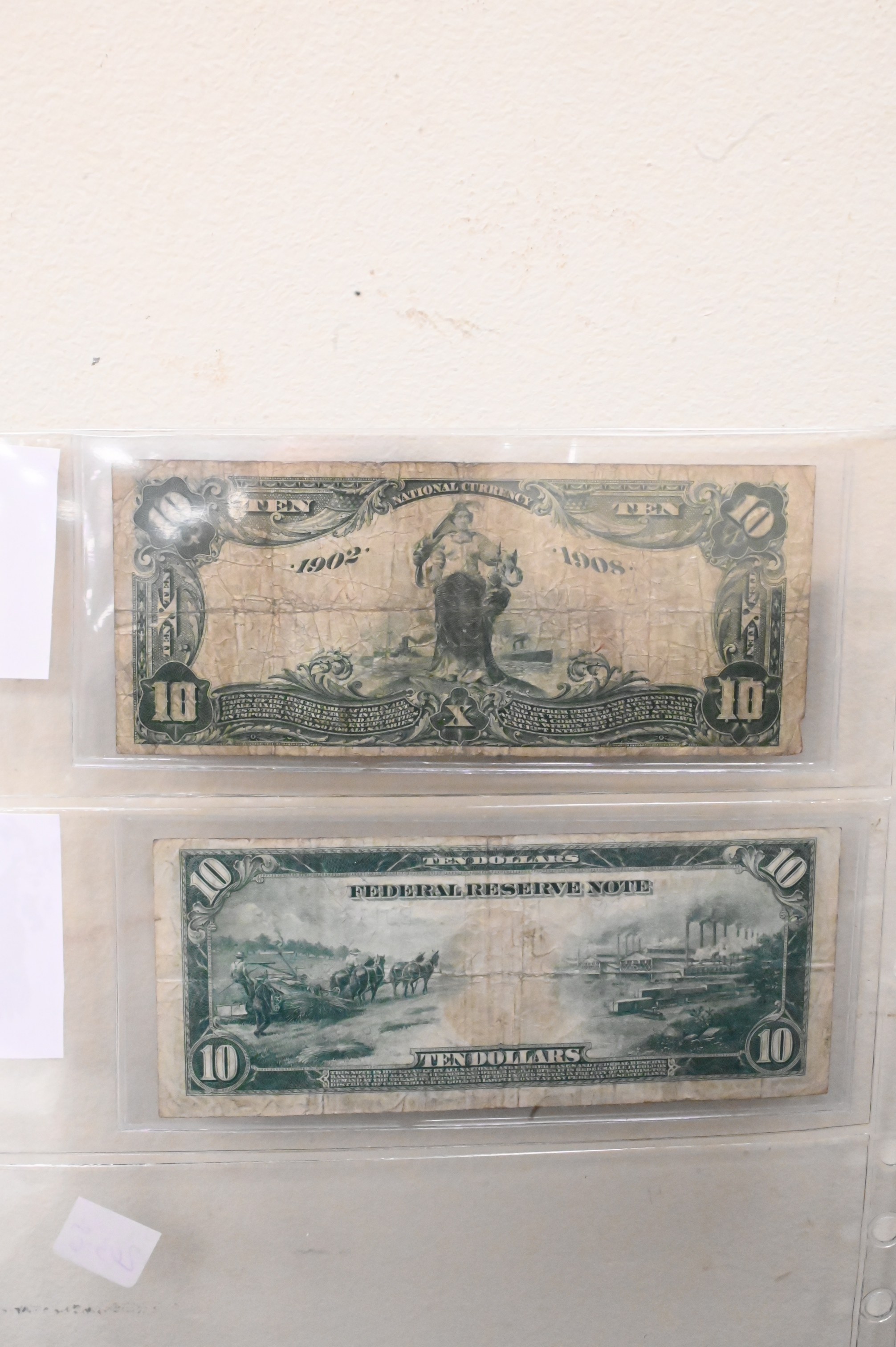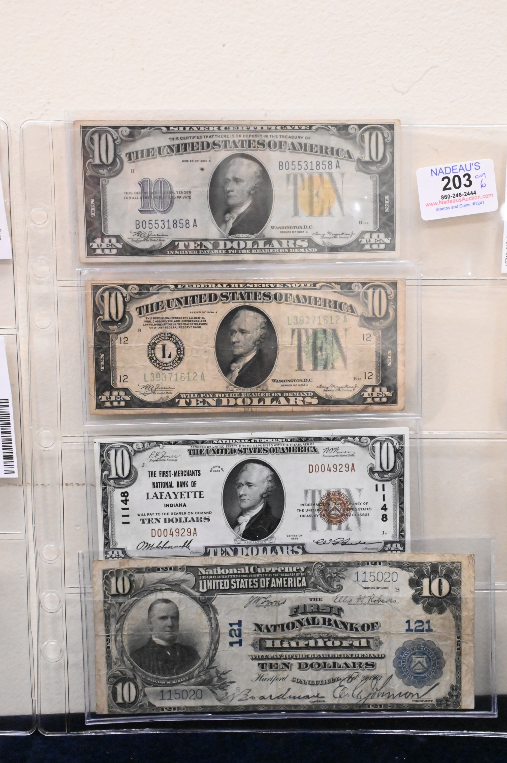Six $10 Notes, one $10 #613, two $10 federal, two $10 national currency, one Silver Certificate, and one Federal