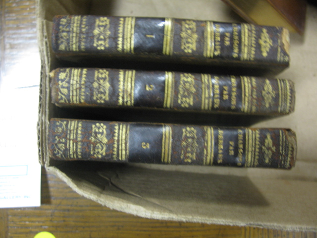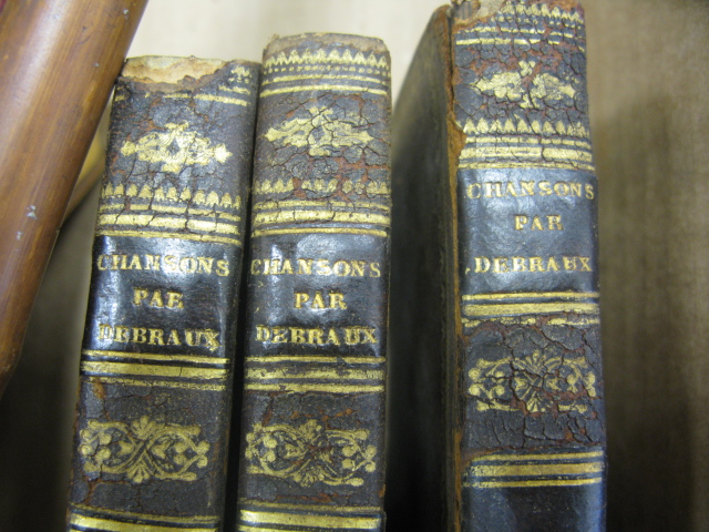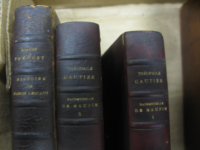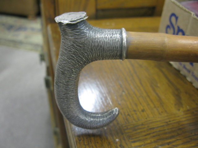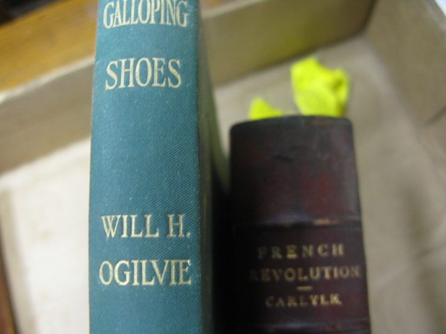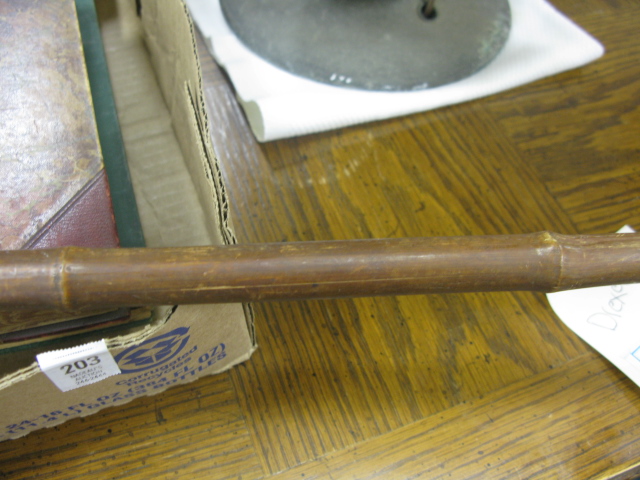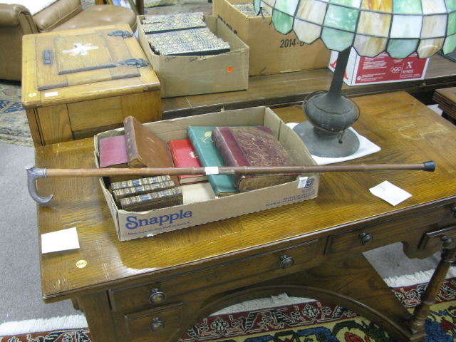 Small box lot of books to include leather bound books and bamboo cane with a sterling top