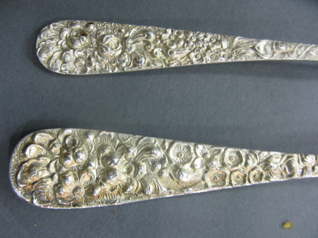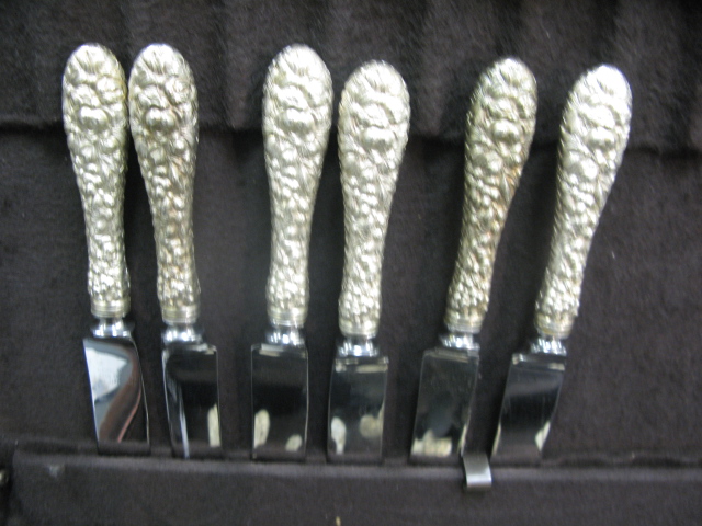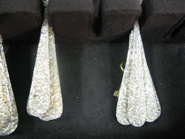 Steiff sterling silver set of thirty-four pieces, including: 6 dinner forks, 6 salad forks, 9 teaspoons, 6 dinner knives, 6 butter knives, 1 serving spoon.