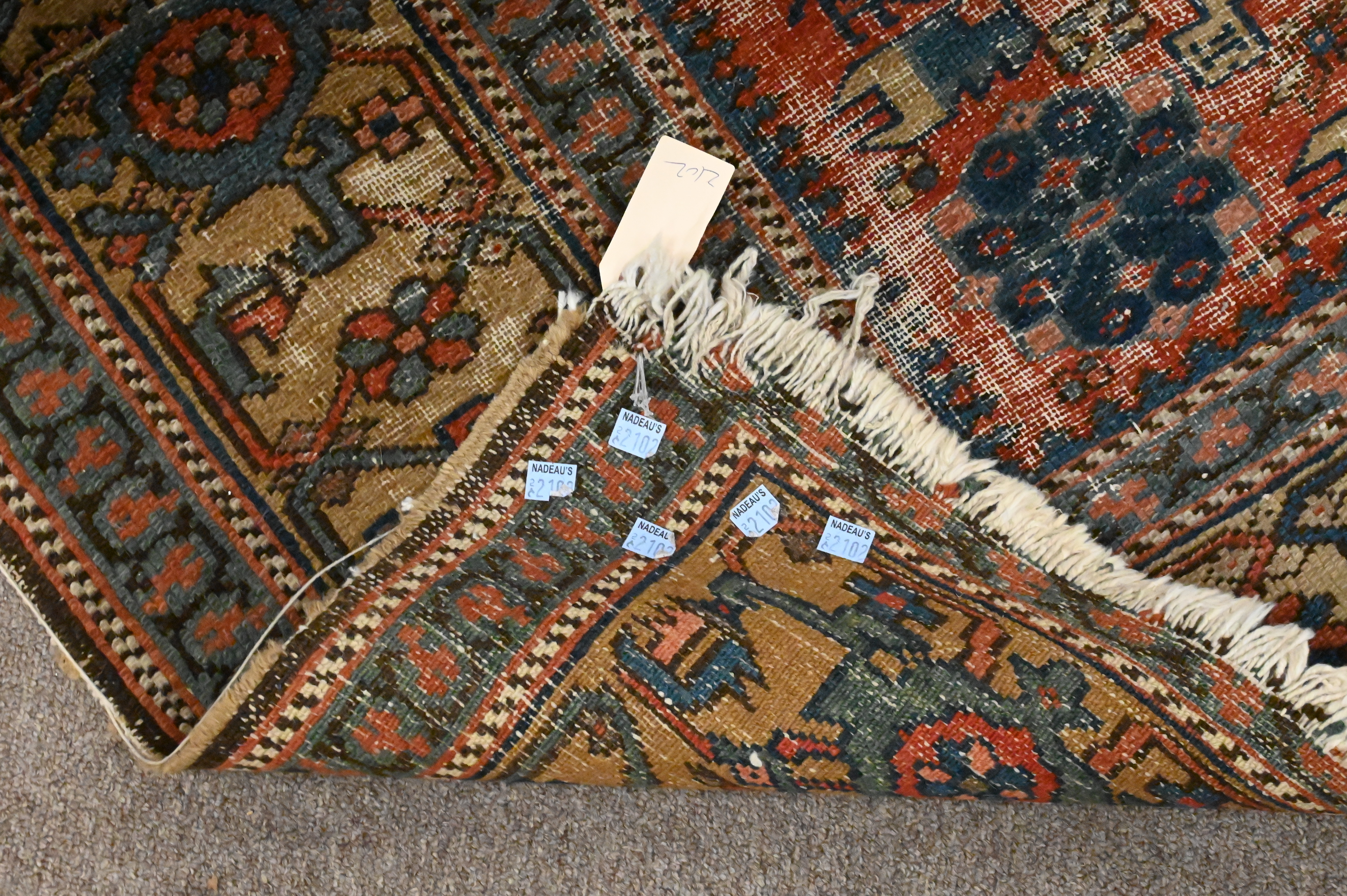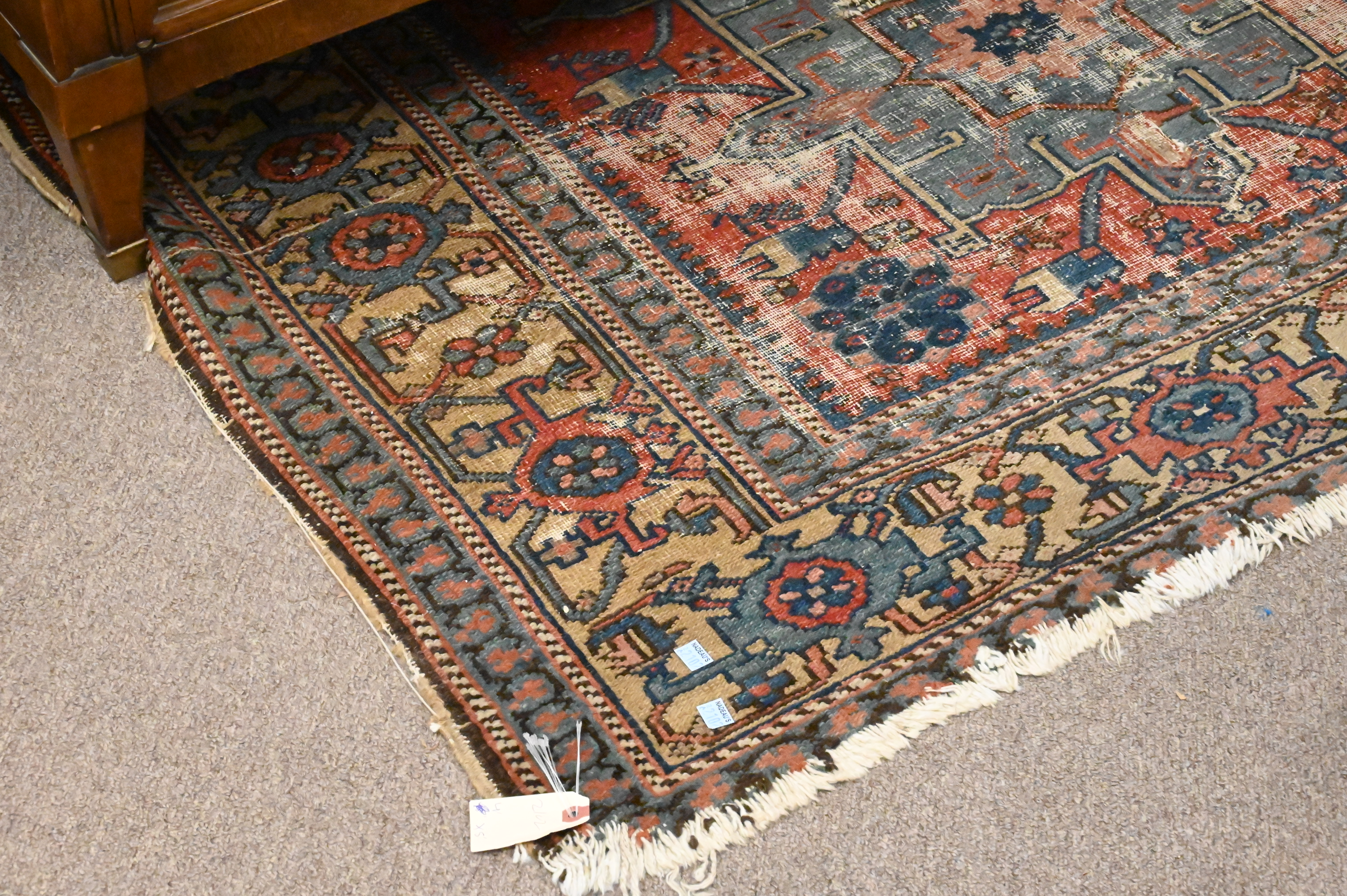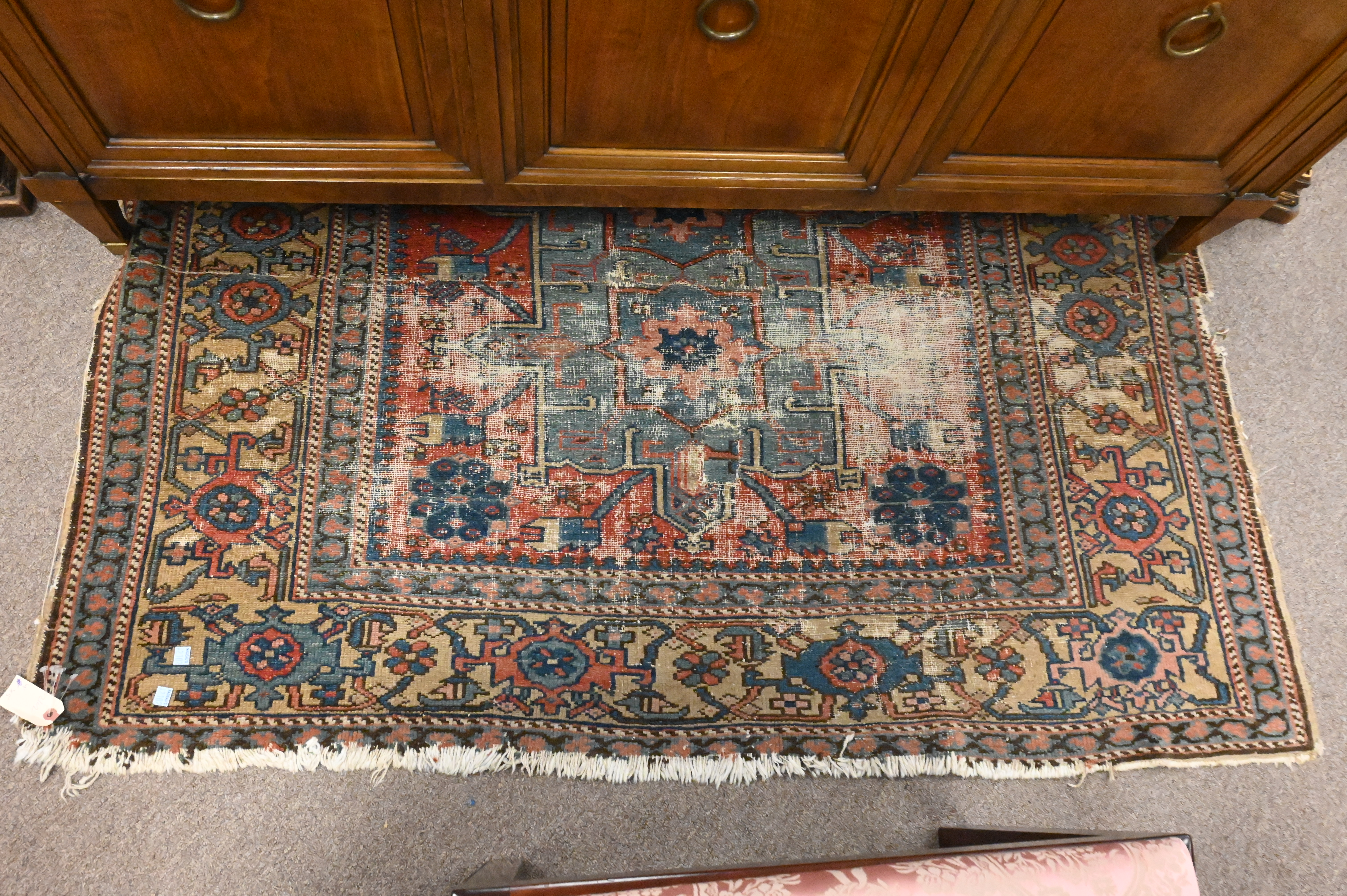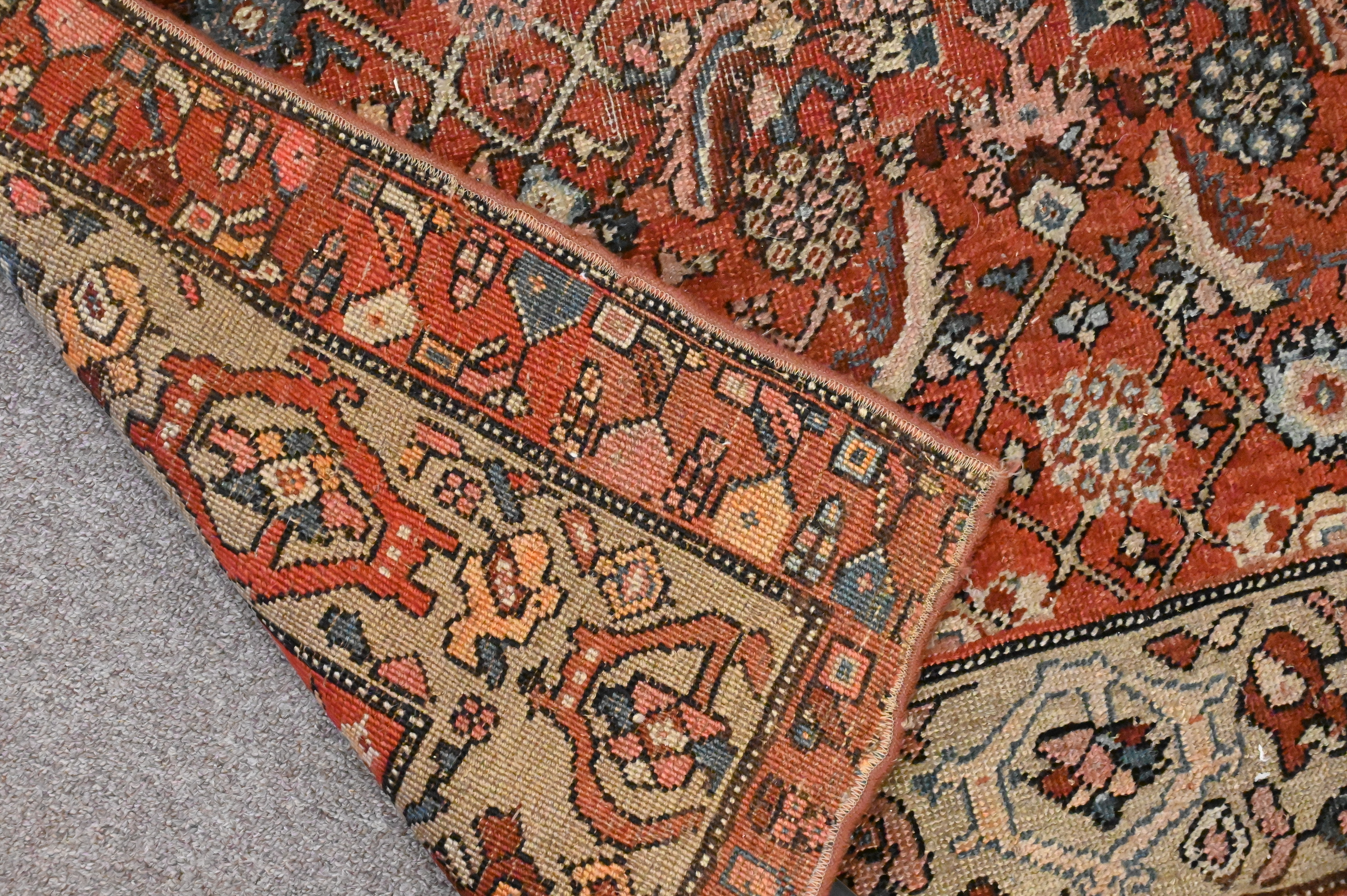 Two Oriental Throw Rugs, one reduced, one with end border missing late 19th century, 3’x5’8″ and 4’x5′