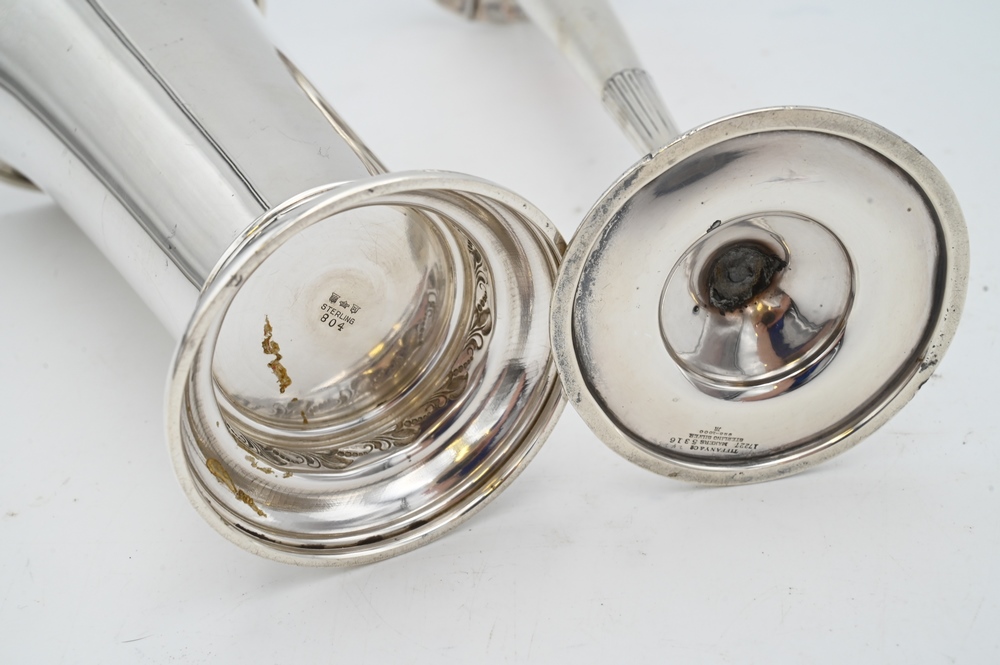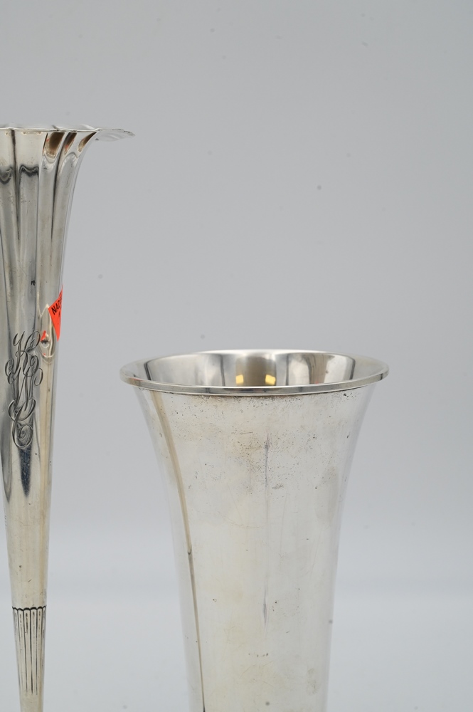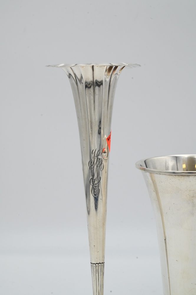 Two Sterling Silver Vases, to include one Tiffany and Company, height 12 1/4 inches and 8 1/4 inches, 21 t.oz.