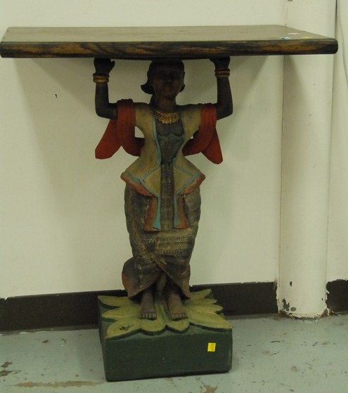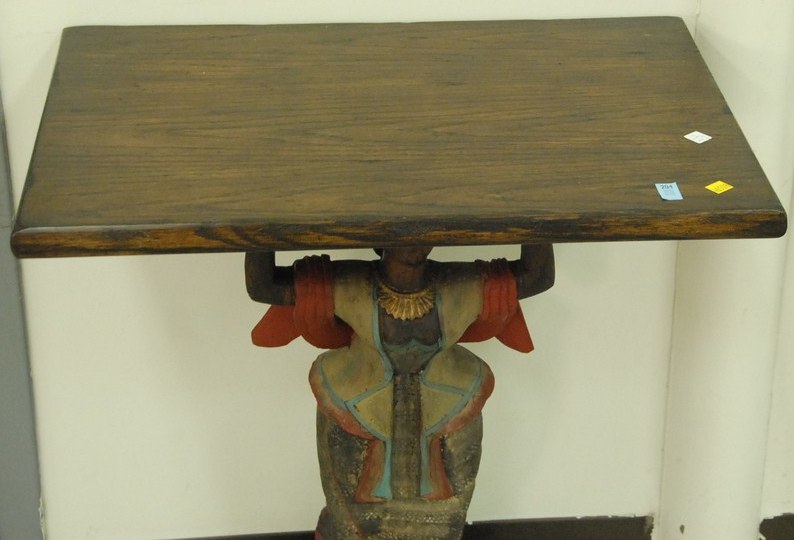 Decorative table with figural base. Provenance: property from a home in Rockville Center, New York which was decorated by Iris Apfel.