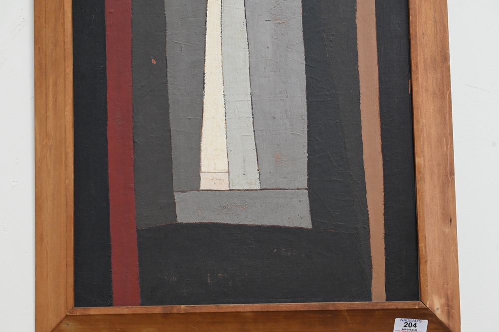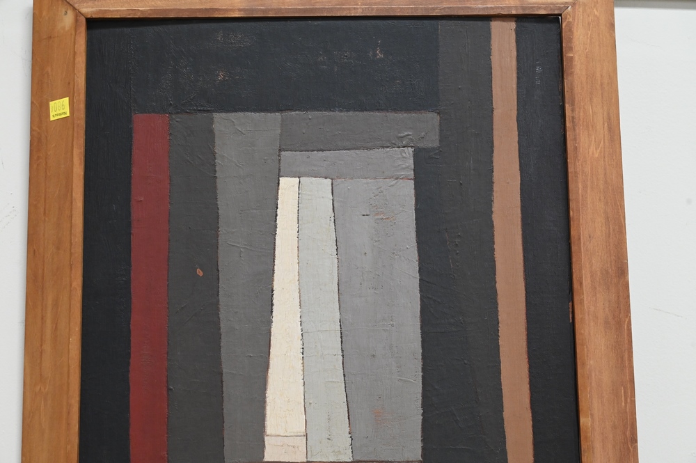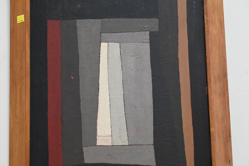 Lot 204: Geometric Abstraction, oil on canvas board, unsigned, 20″ x 16″.