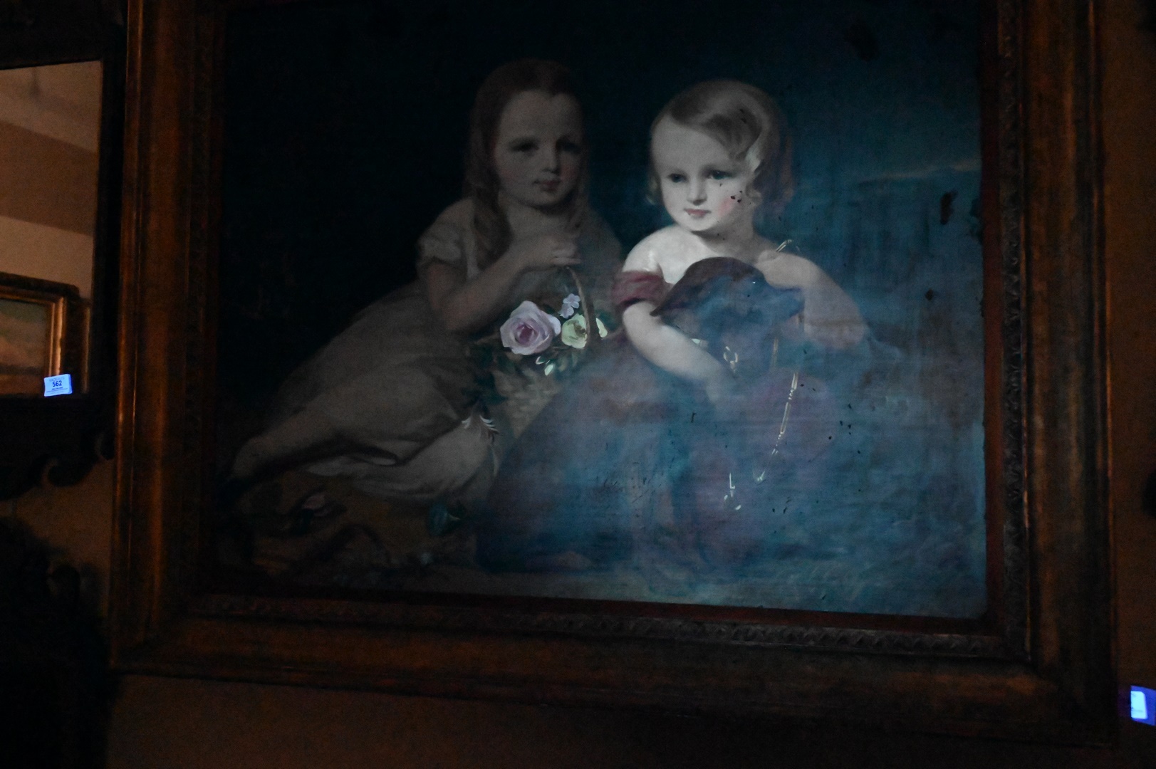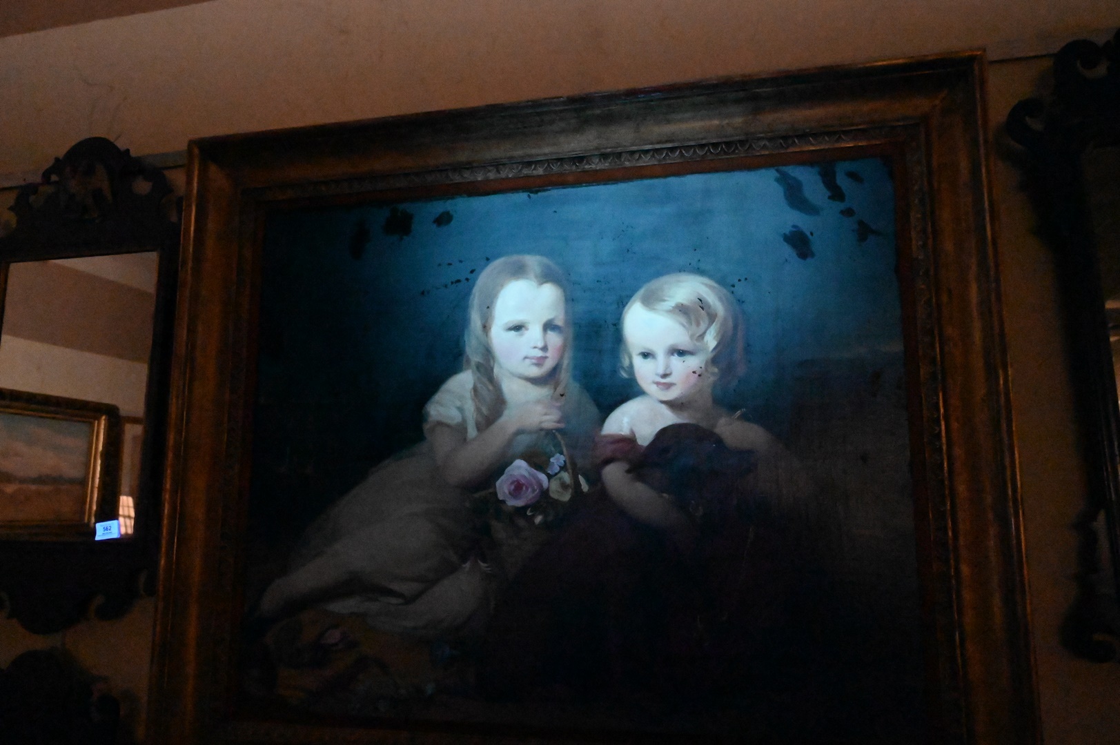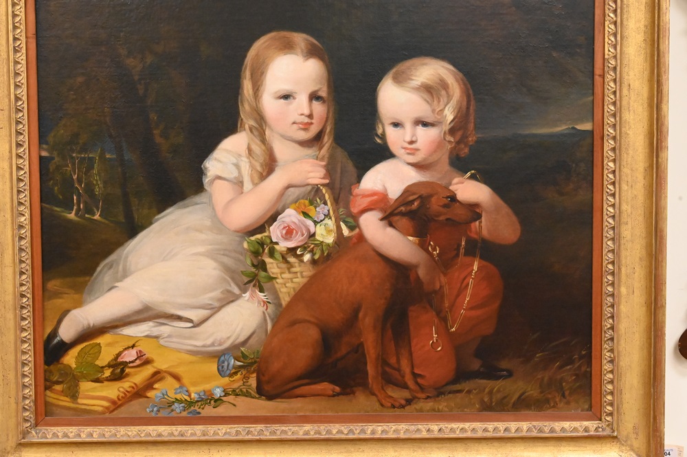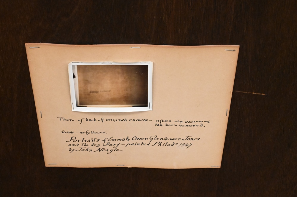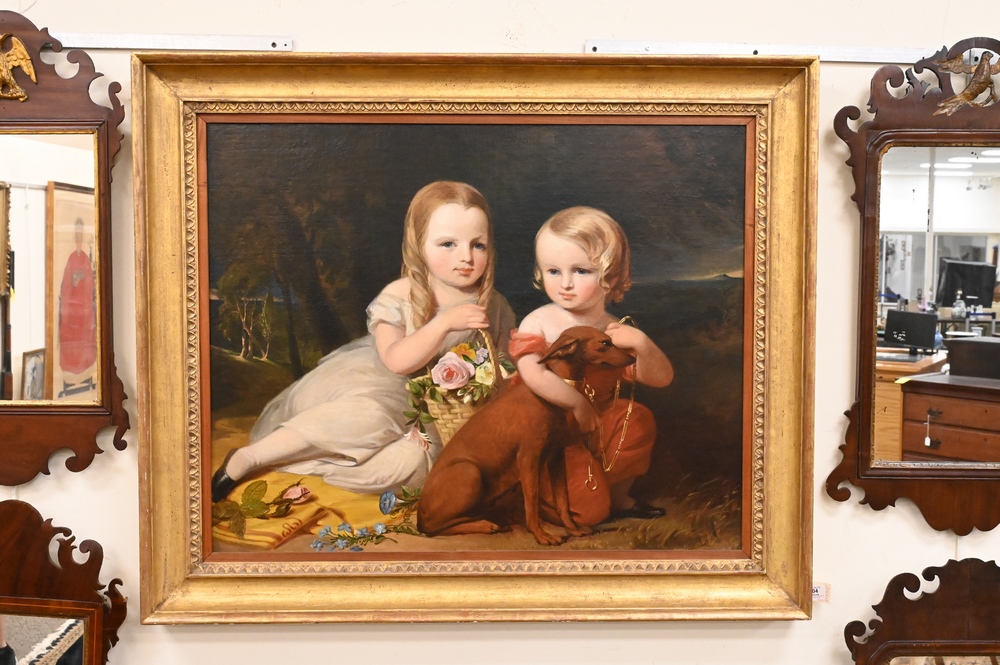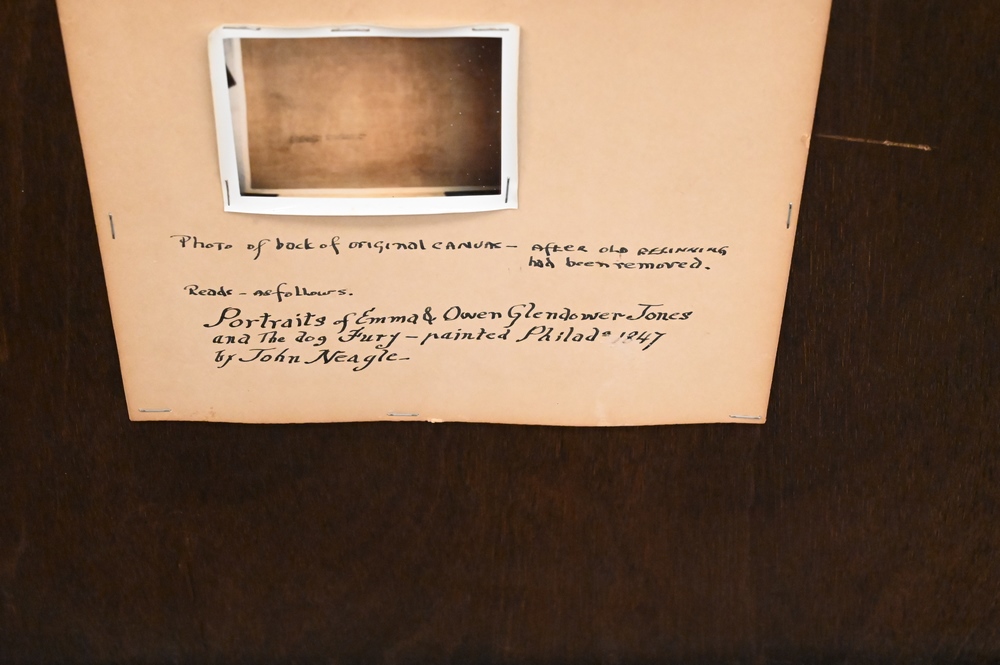 Lot 204: John Neagle, 1847, oil on canvas, Emma and Owen Glendower Jones and Dog Fury, 28 1/2″ x 36″.