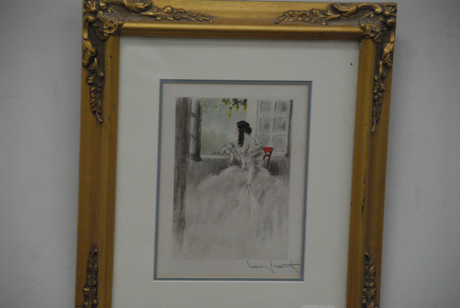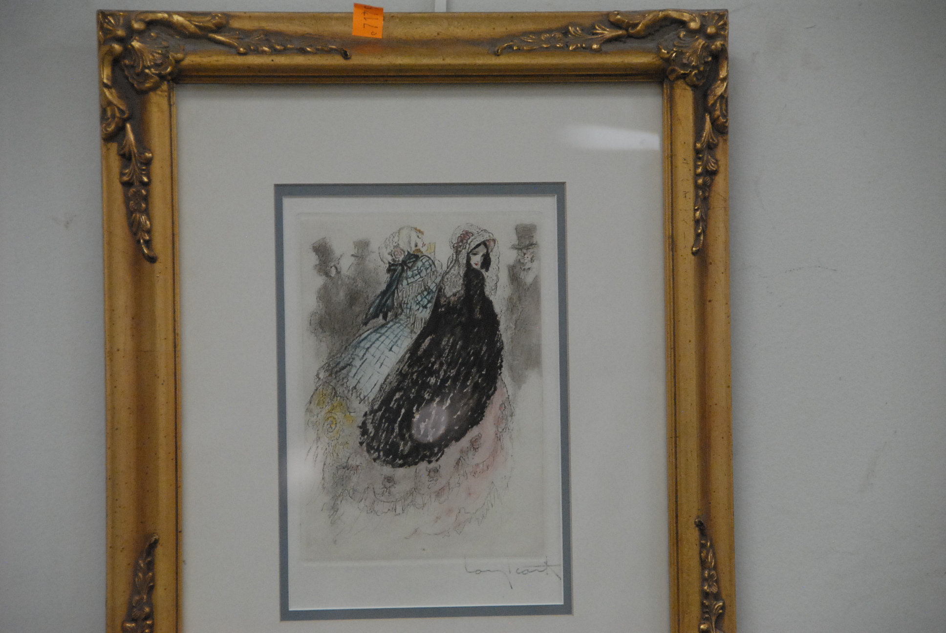 Lot 204: Louis Icart 1888-1950 two colored etchings of women in full gowns signed in pencil lower right Louis Icart, 7 x 5 1/2.