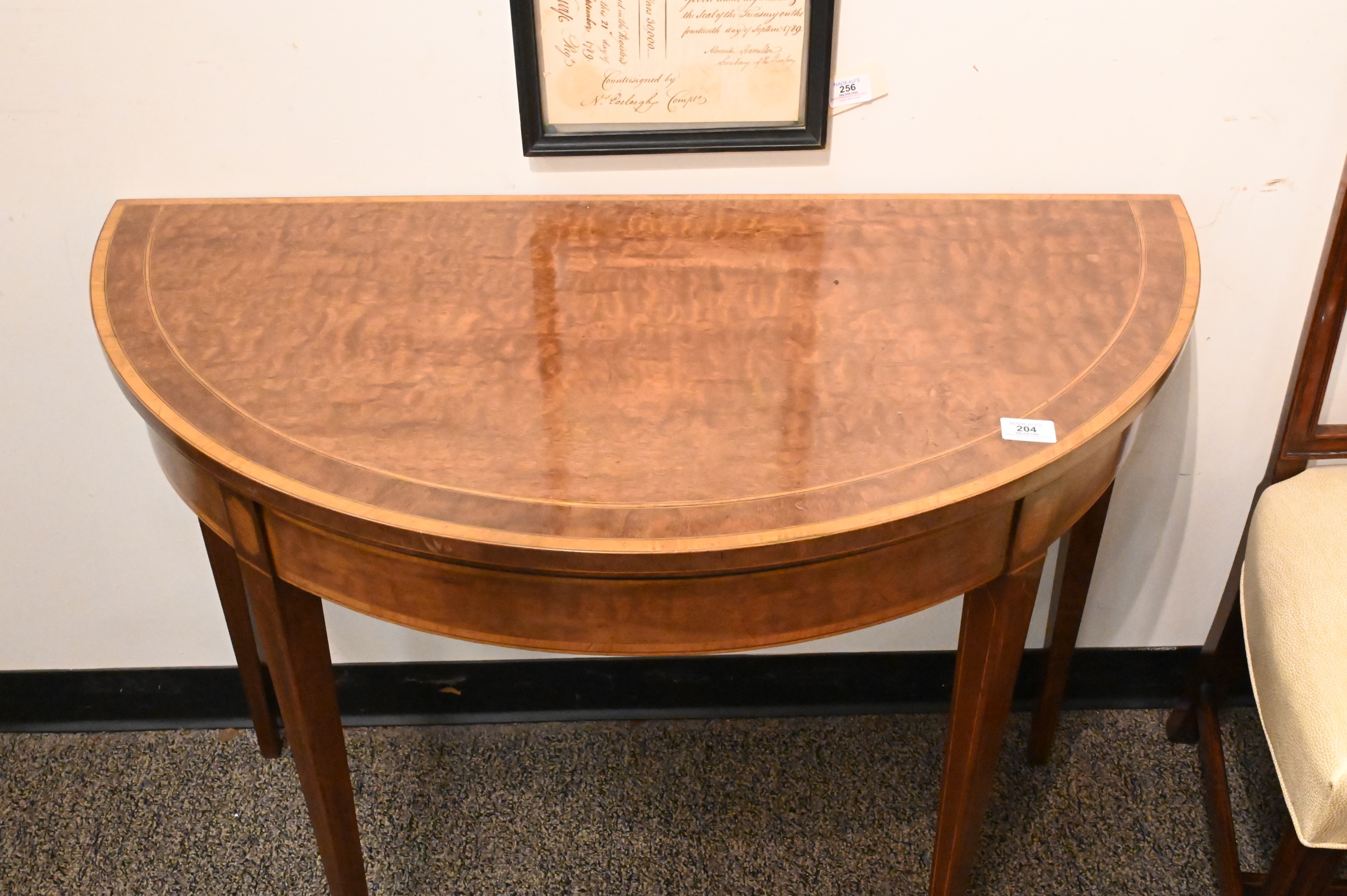 Lot 204: Pair of George III Plum Pudding Mahogany Demilune Tables