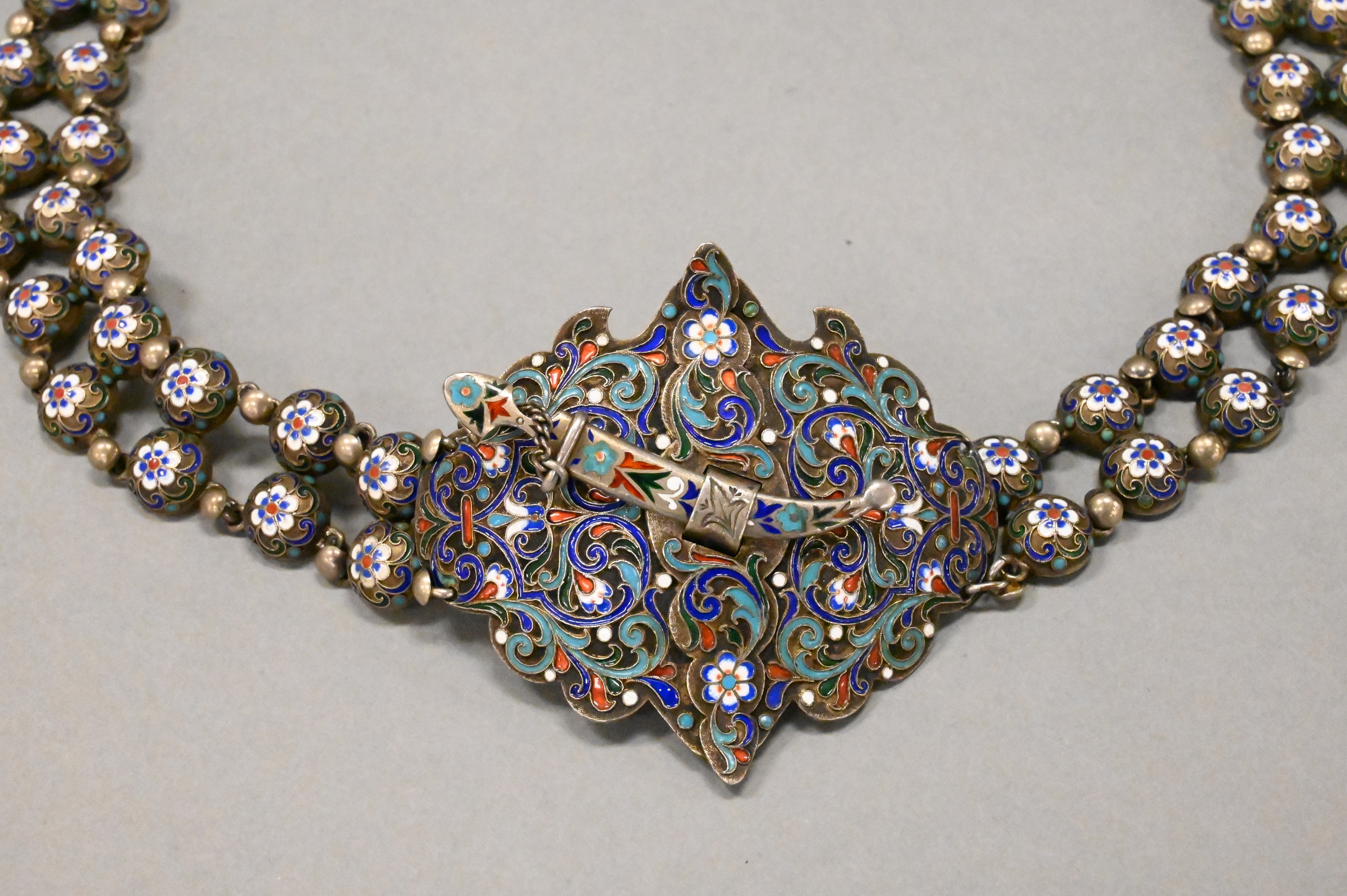 Lot 204: Russian Enamel Silver Ceremonial Ladies Belt