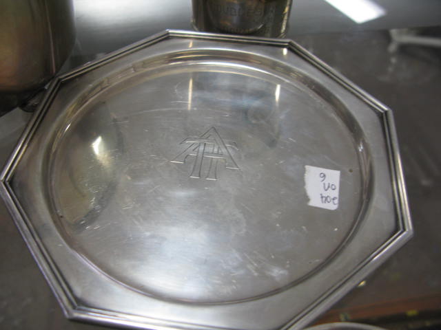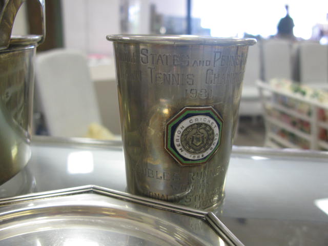 Six sterling tennis trophies to include hat, two small dishes and small plate