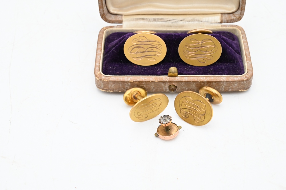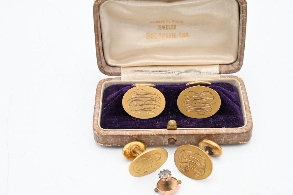 Lot 204: Two pairs of 10 Karat Gold Cufflinks, 12 grams, Provenance: Fifty Year Personal Collection of Clocks and American Antiques from Thomas Bailey, Manchester, Connecticut.
