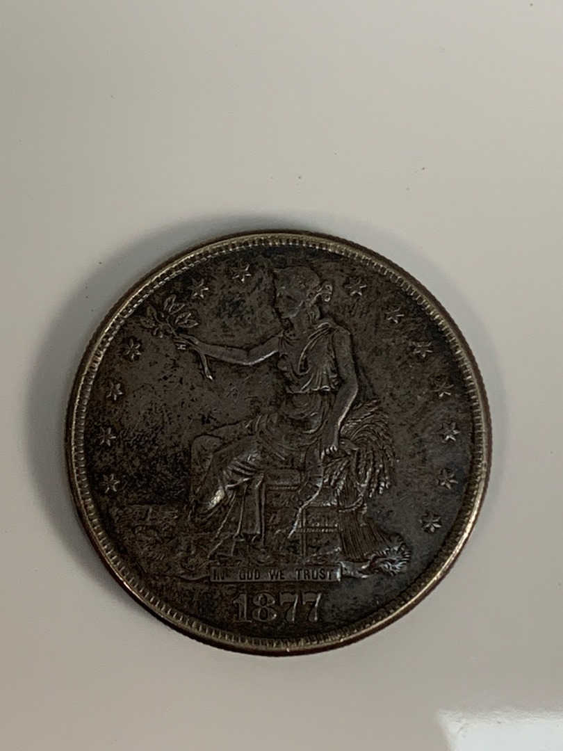 1877-S trade dollar photo locket, finely cut and milled interior to hold photo interior hinge as is.