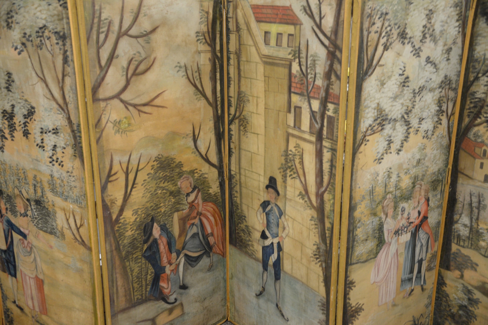 19th Century Six Panel French Dressing Screen, height 62 inches, width 150 inches.
