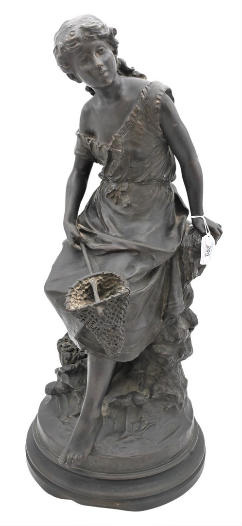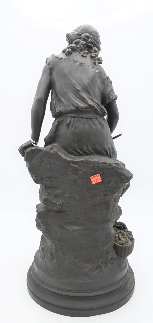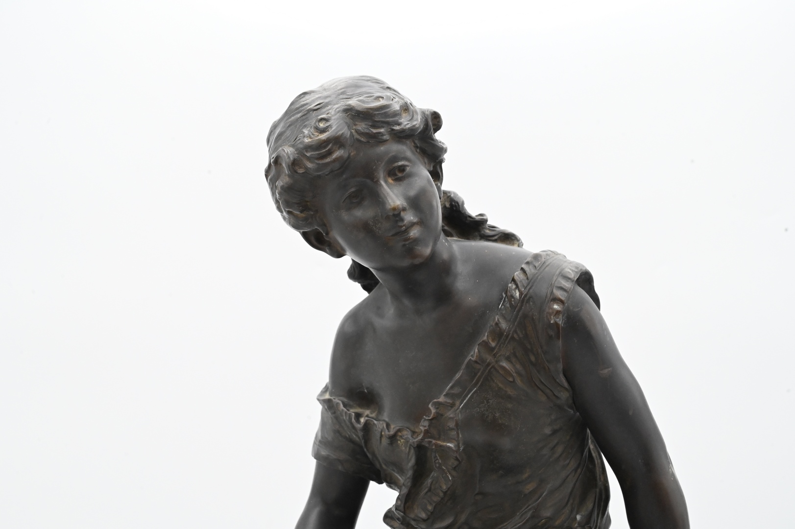 After Auguste Moreau, bronze figure of young girl, marked “Auguste Moreau” and “Societe Des Bronzes de Paris” on base, height 25 1/2 inches.