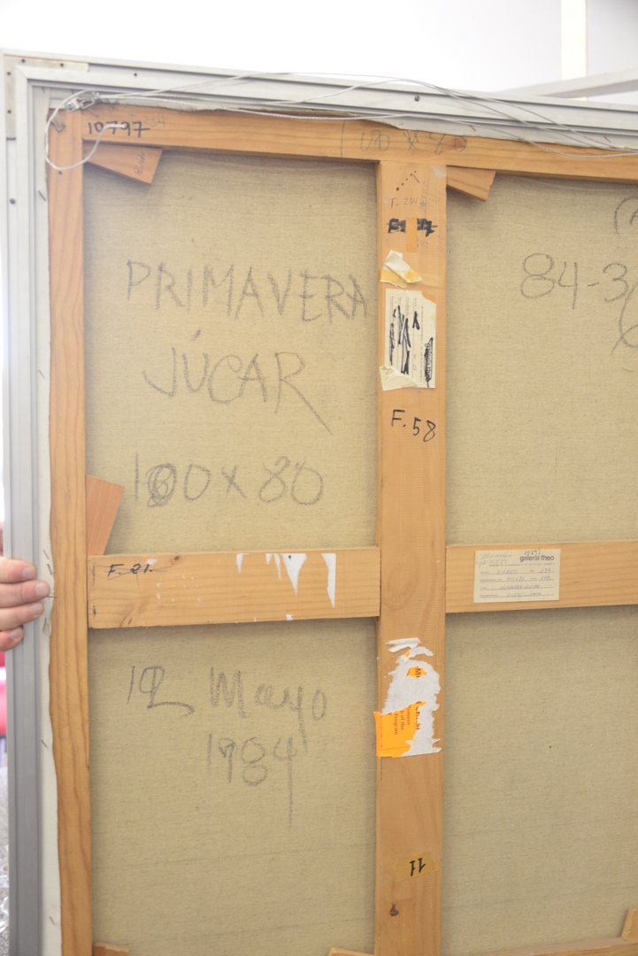 Lot 205: Fernando Zobel De Ayala (Spanish-Filipino, 1924-1984), THIS PIECE IS DATED MAY OF 1984, ZOBEL PASSED AWAY JUNE 2, 1984; Primavera, Jucar, 1984, oil on linen, signed, titled, and dated on the reverse, 39 3/8″ x 31 1/2″.
