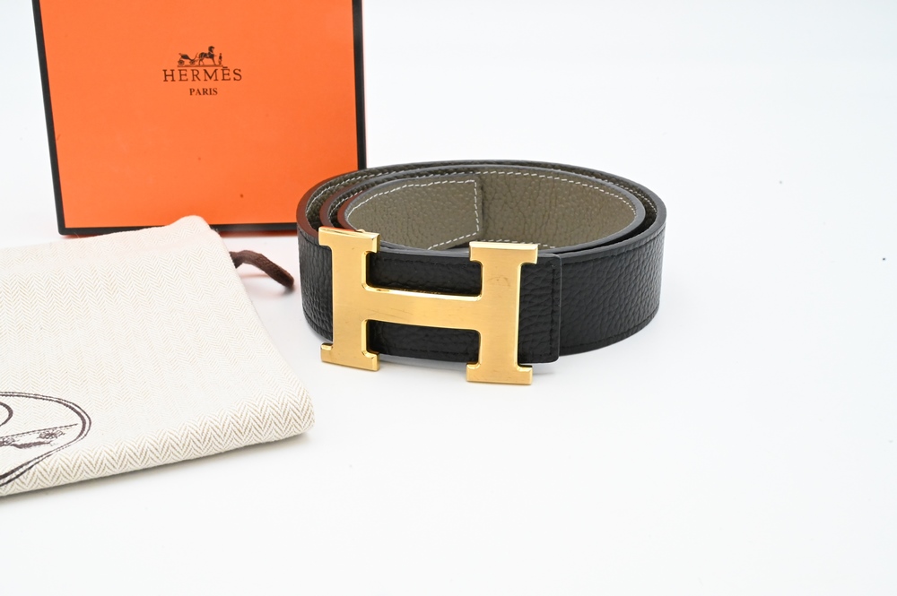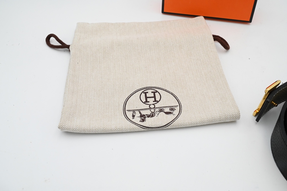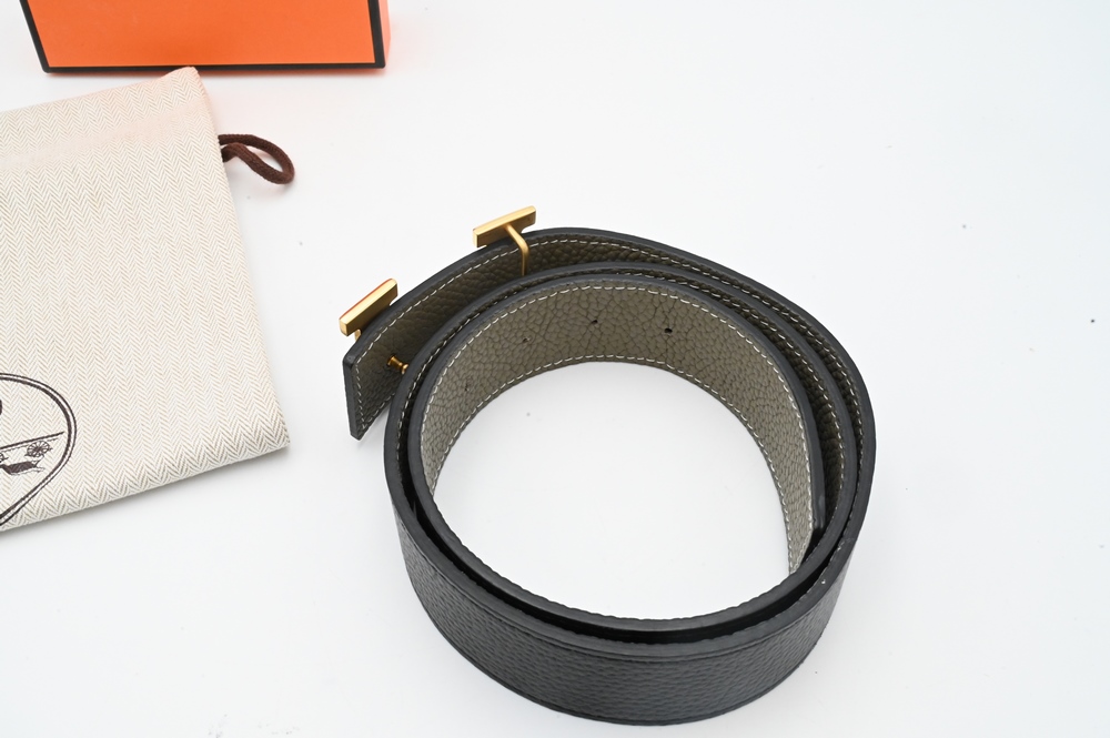 Hermes “H Buckle” Belt, having reversible leather strap, in original box.