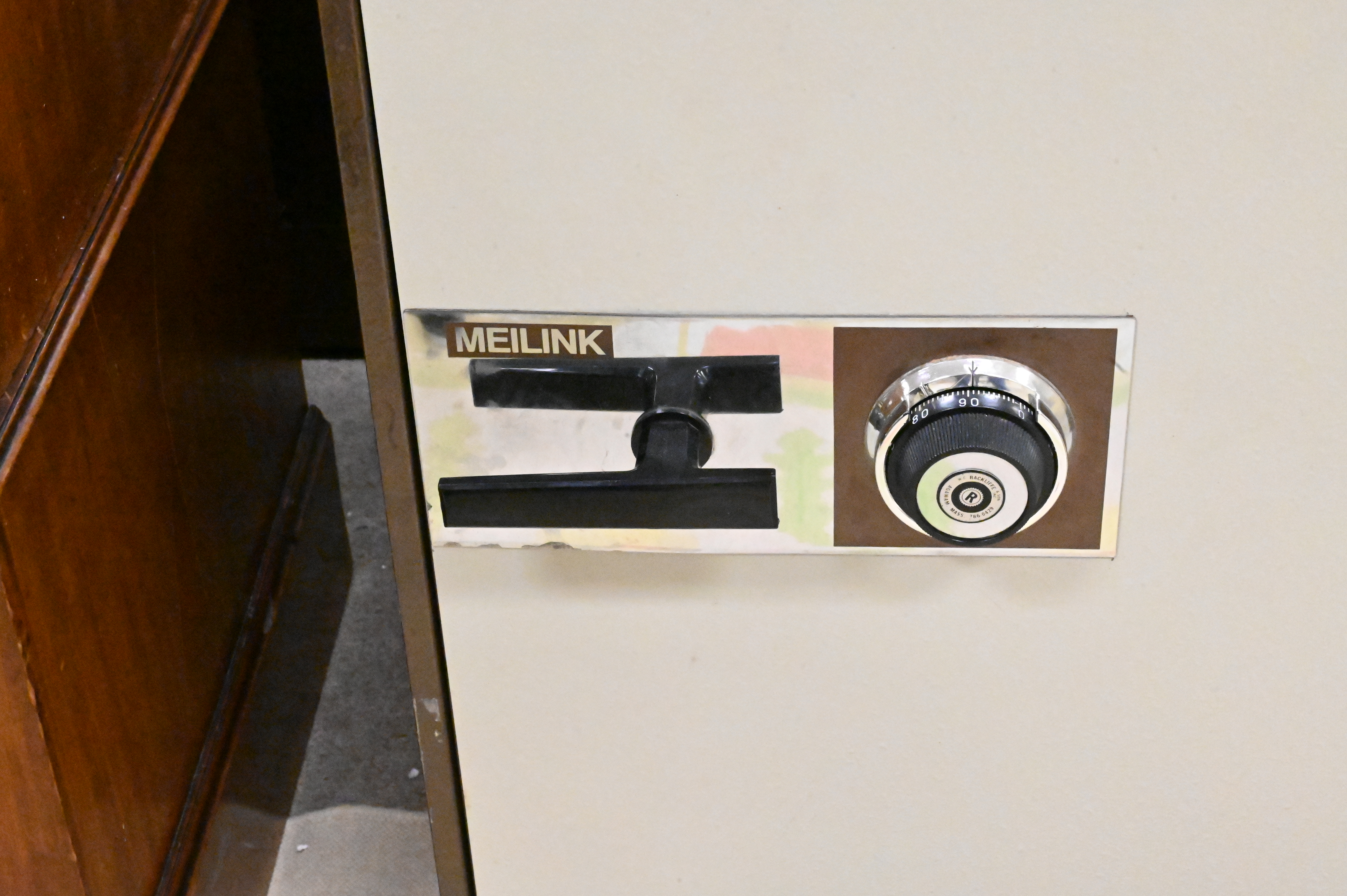 Meiline Model 82 Safe, serial #63213, with combination, height 27 inches, width 19 inches, depth 21 inches.