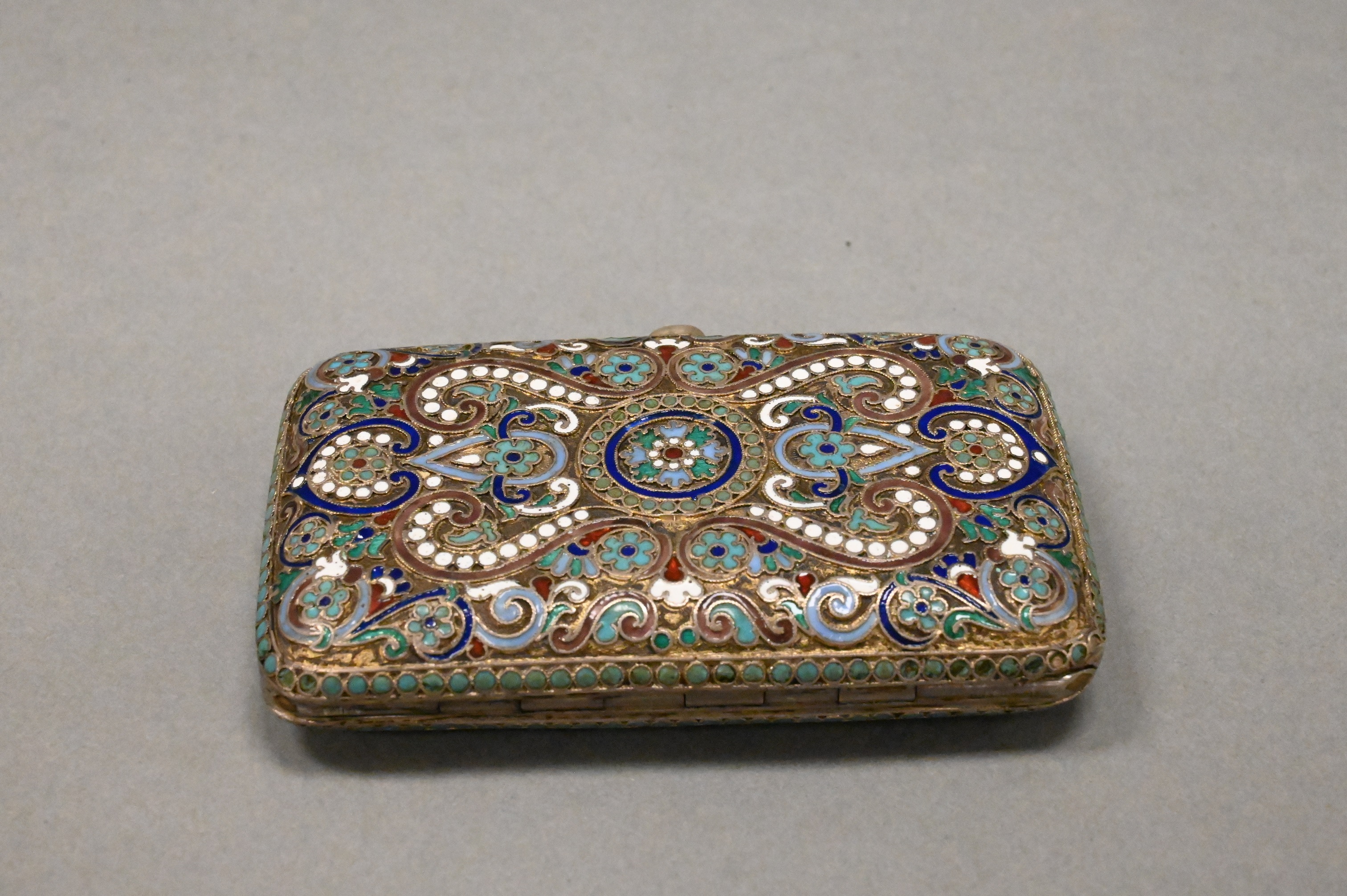 Lot 205: Russian Enamel Silver Cigarette Box