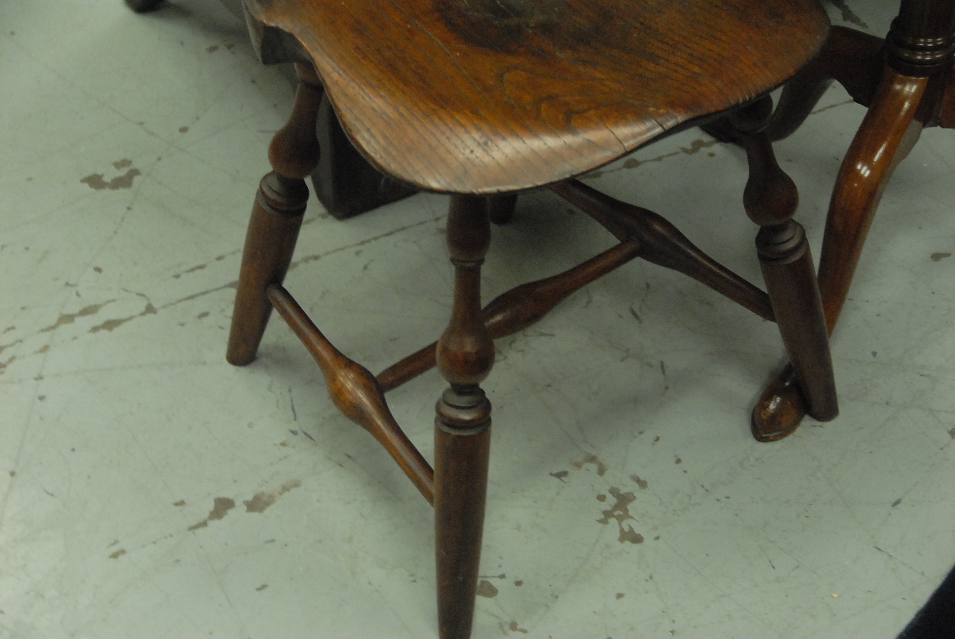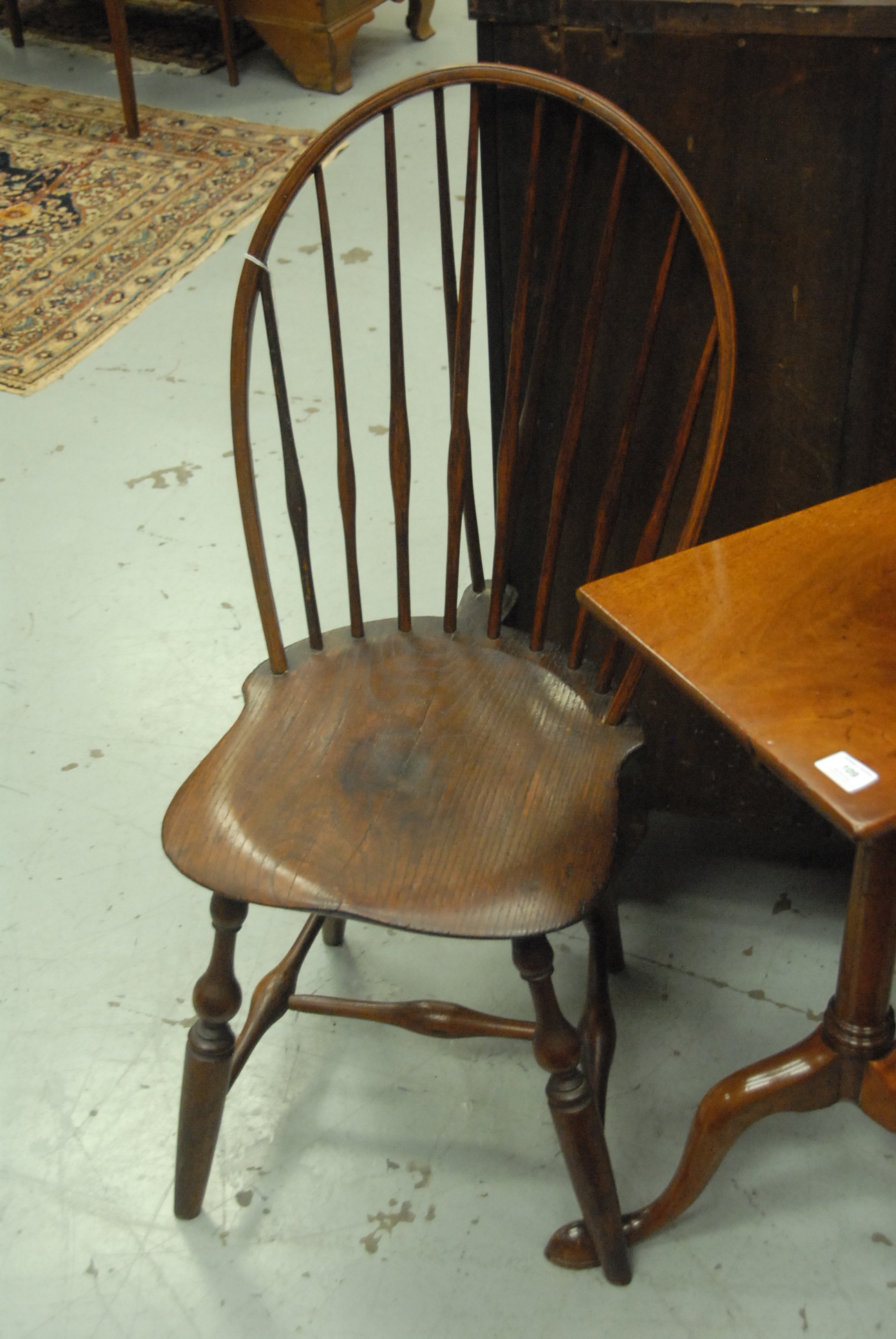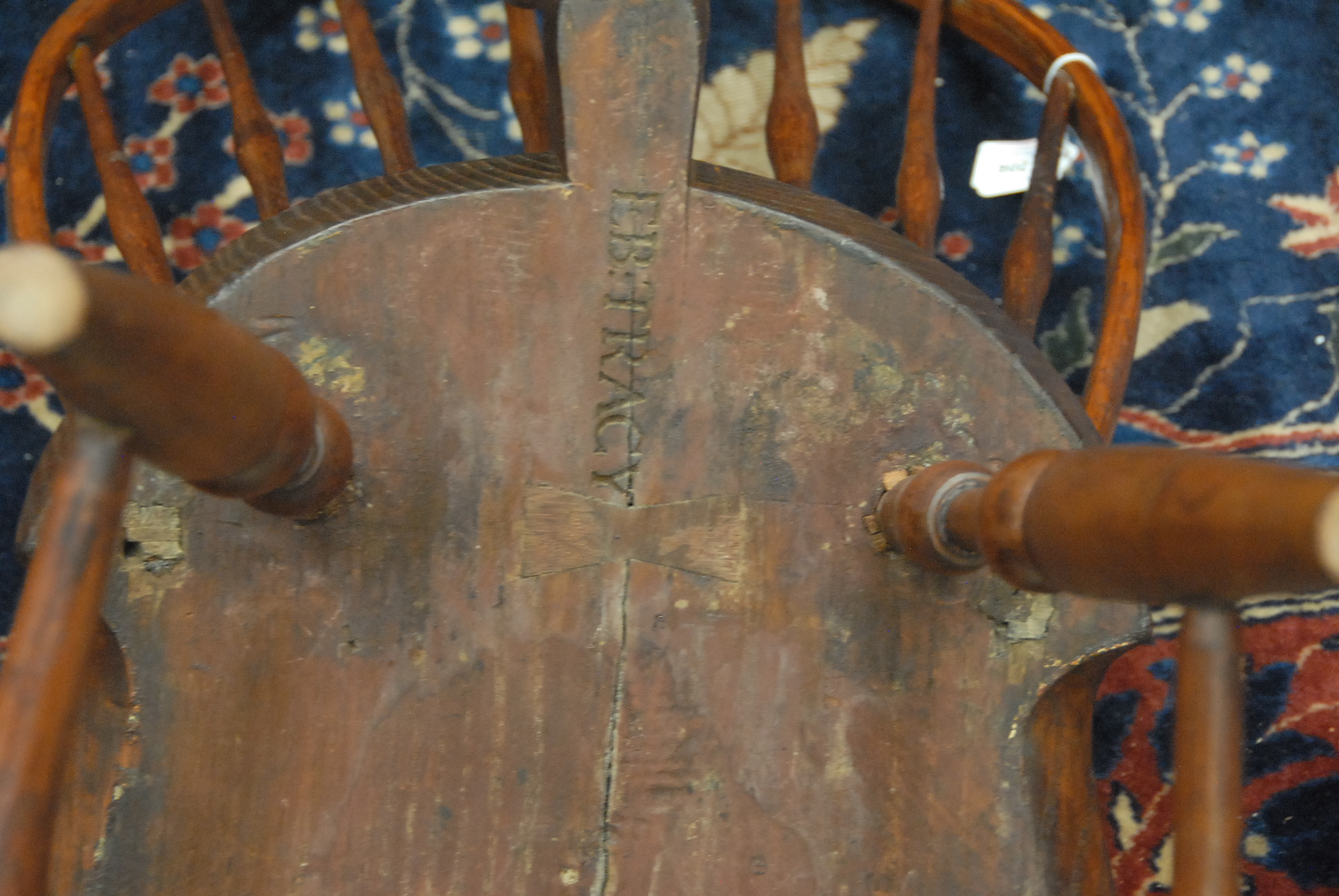 Lot 206: E. B. Tracy bowback side chair with brace back on bold turned legs, signed on bottom E. B. Tracy seat repaired. seat ht. 18 in. Provenance: Property from the Estate of Elizabeth and Edward Wallace of The Tracy House in Meriden, Connec