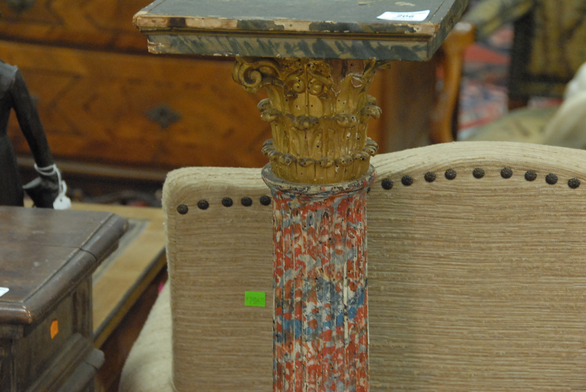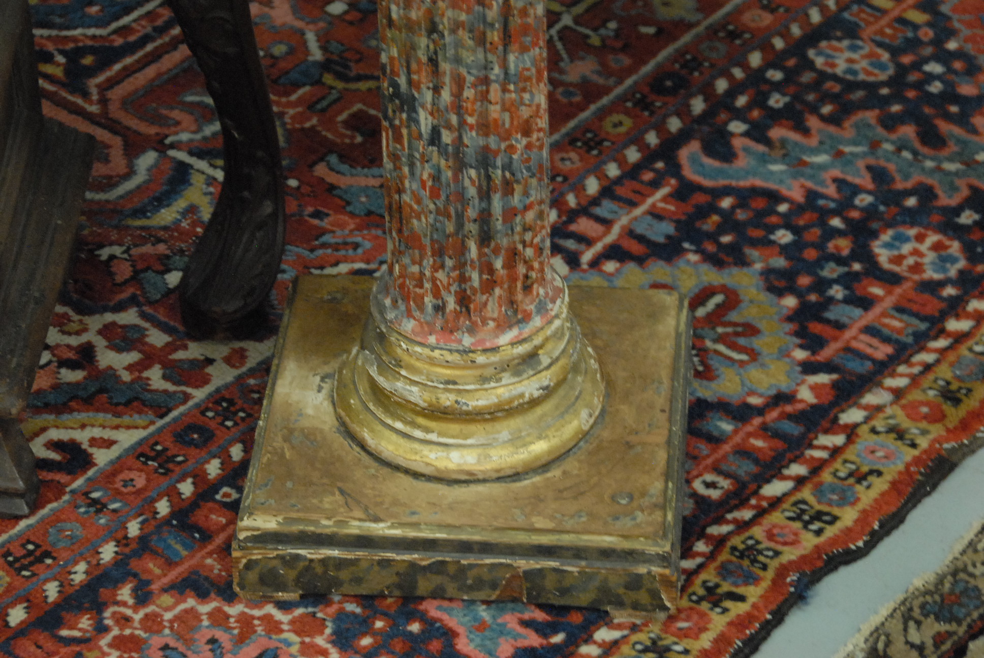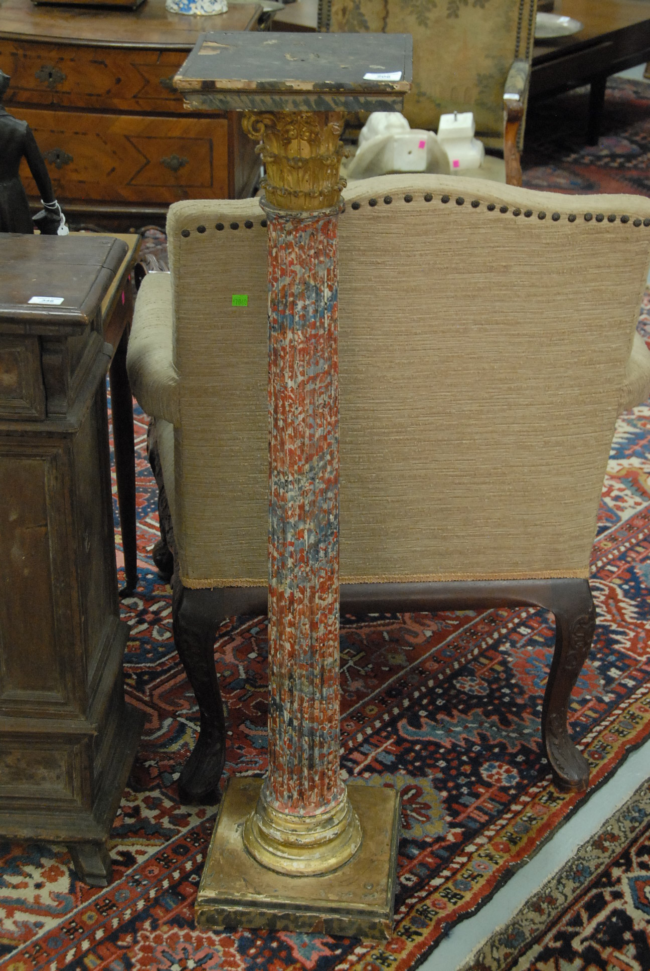 Lot 206: Faux marble painted and carved wood pedestal with square top on fluted shaft set on square base. ht. 47in.
