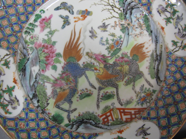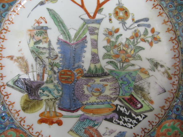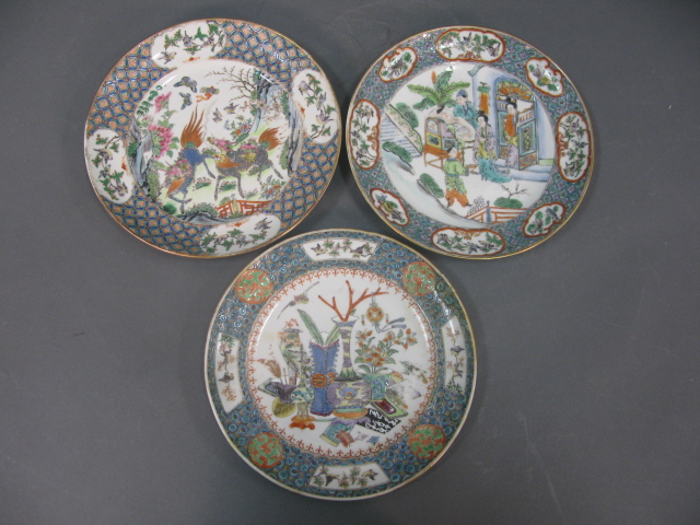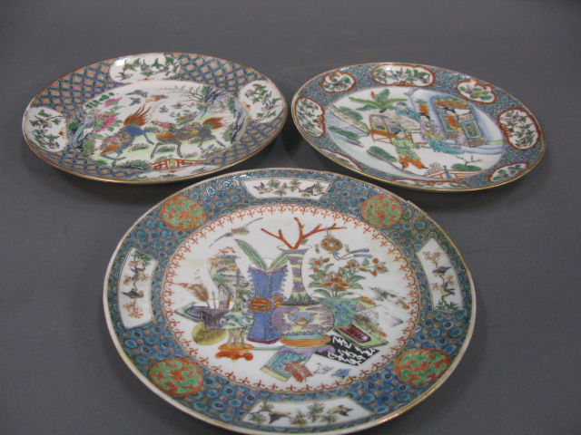 Group of three famille-rose plates, one as is.