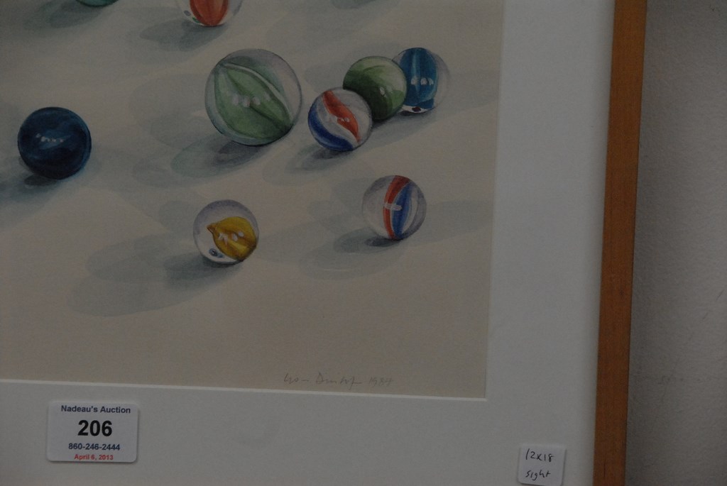 Lot 206: Lisa Dinhofer 1952 MARBLES #6 watercolor signed and dated lower right Lisa Dinhofer 1984 Schmidt Bingham Gallery label…