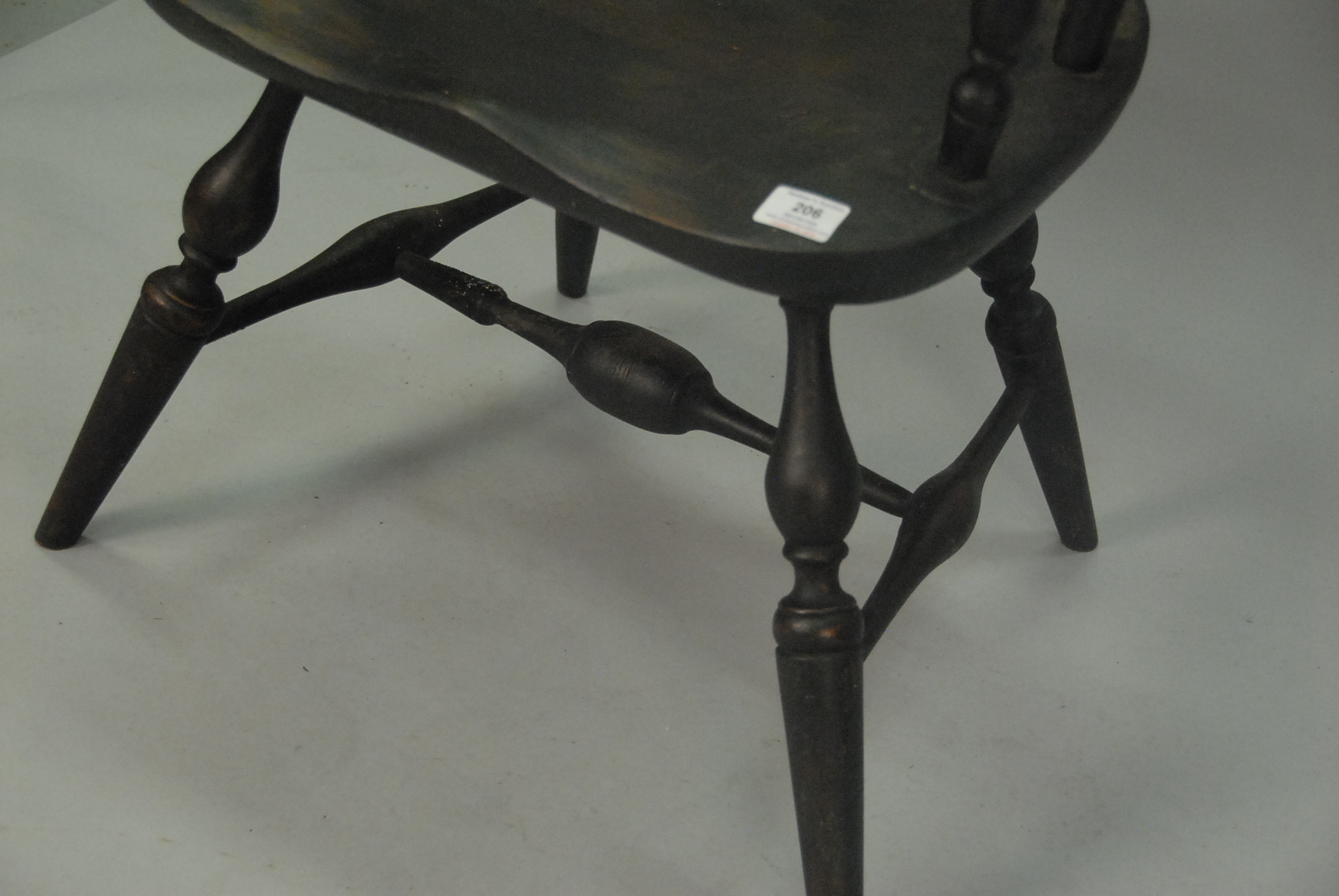 Lot 206: Nantucket Windsor armchair, fanback with saddle seat and bold turned legs. seat ht. 16 1/4in.