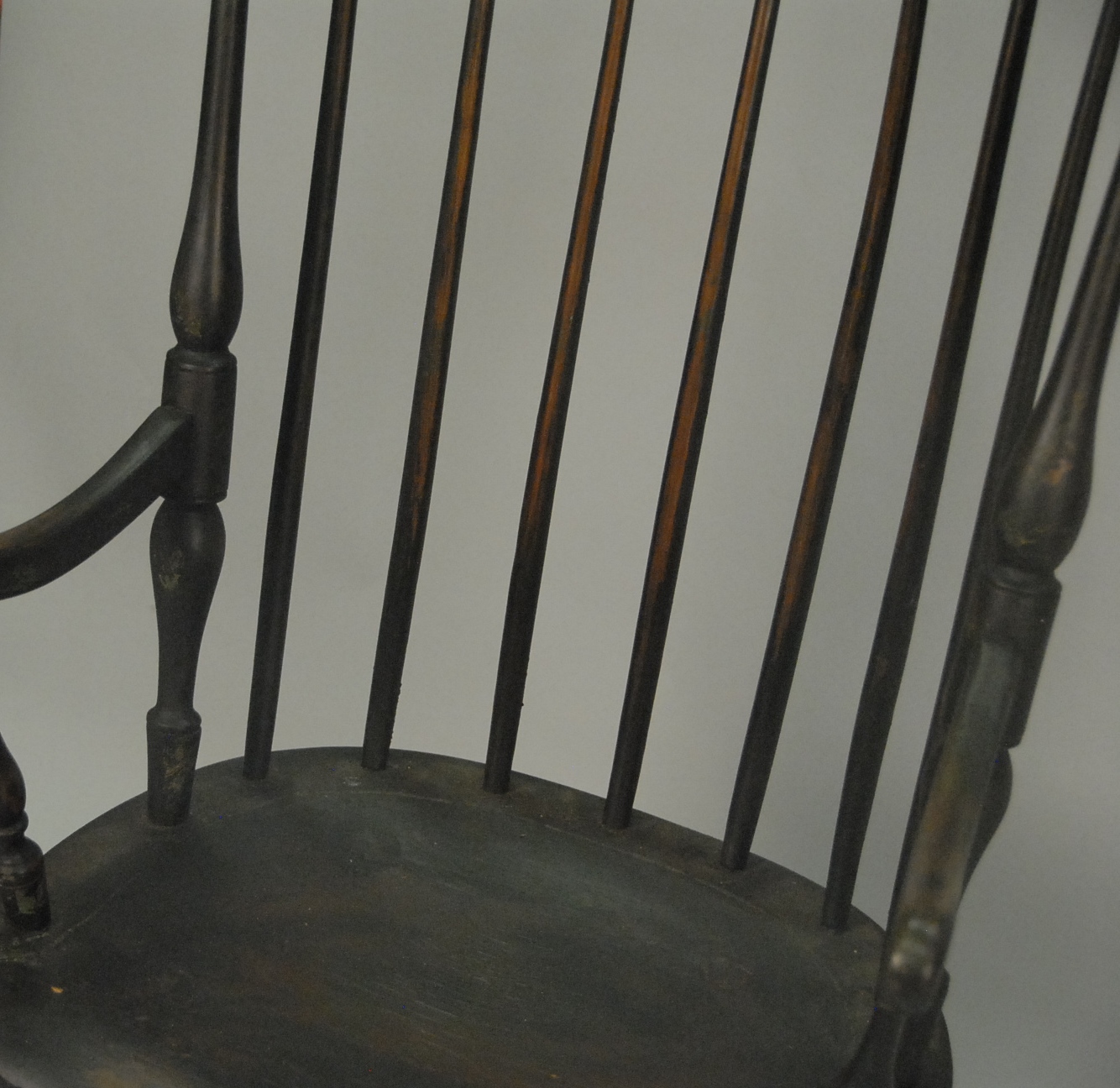 Nantucket Windsor armchair, fanback with saddle seat and bold turned legs. seat ht. 16 1/4in.