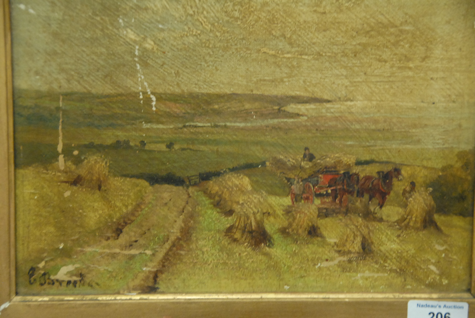 Oil on canvas Haying signed lower left indistinctly, 9 1/2 x 11 1/2.