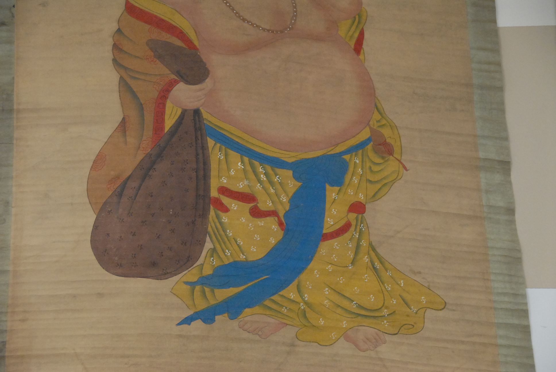 Oriental scroll painting of Buddha on paper, 50 x 25.