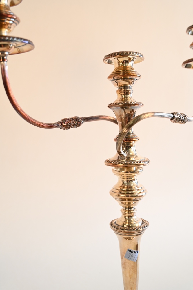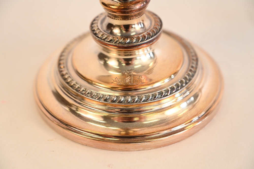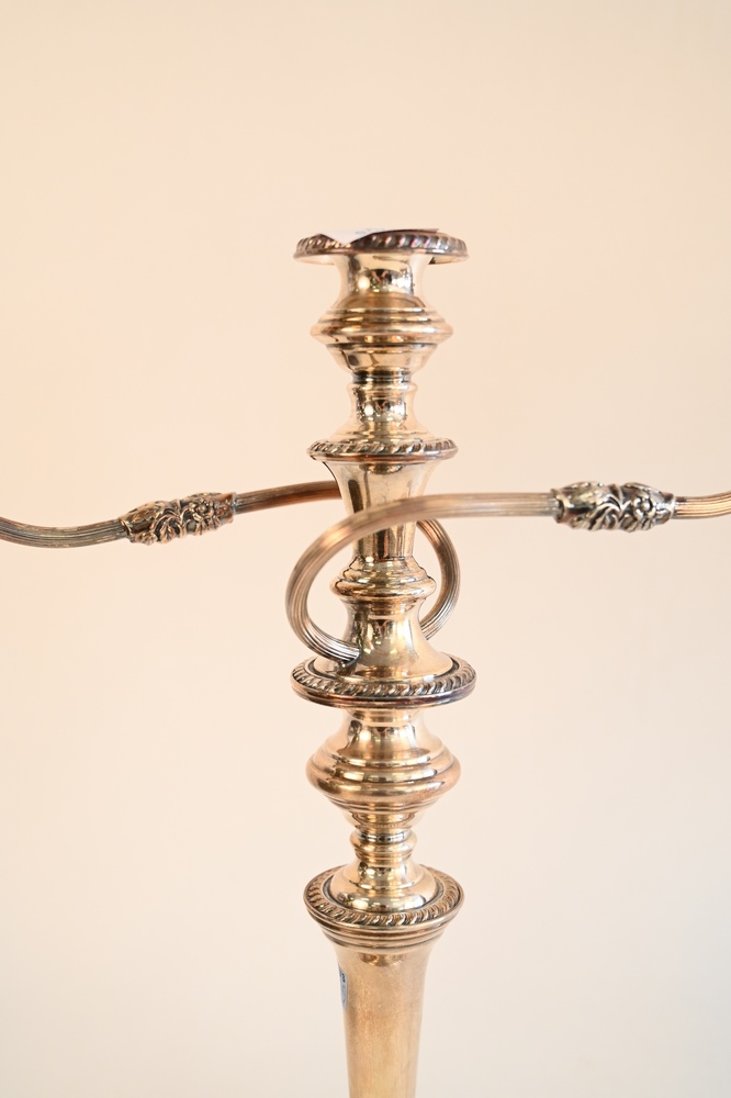 Lot 206: Pair of Silver Plated Candelabras, having round bases, height 20 1/2 inches.