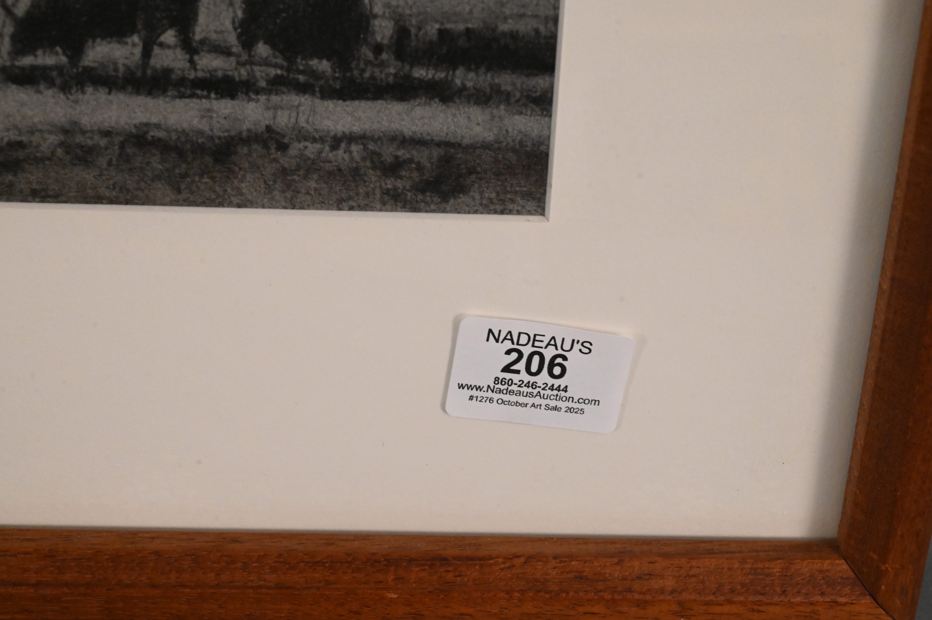 “Early Morning Feeding”, Charcoal on paper, Signed lower right R.T.Milici VI
