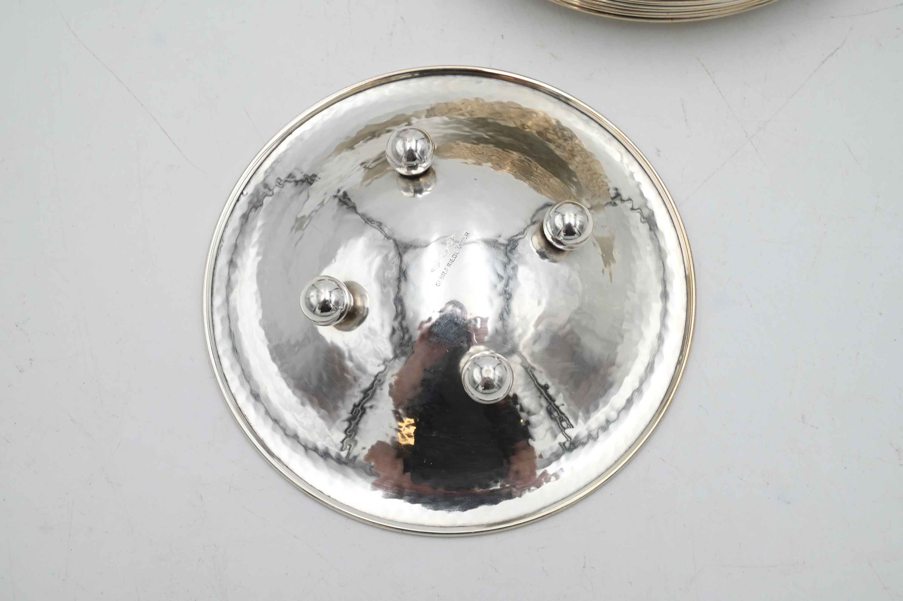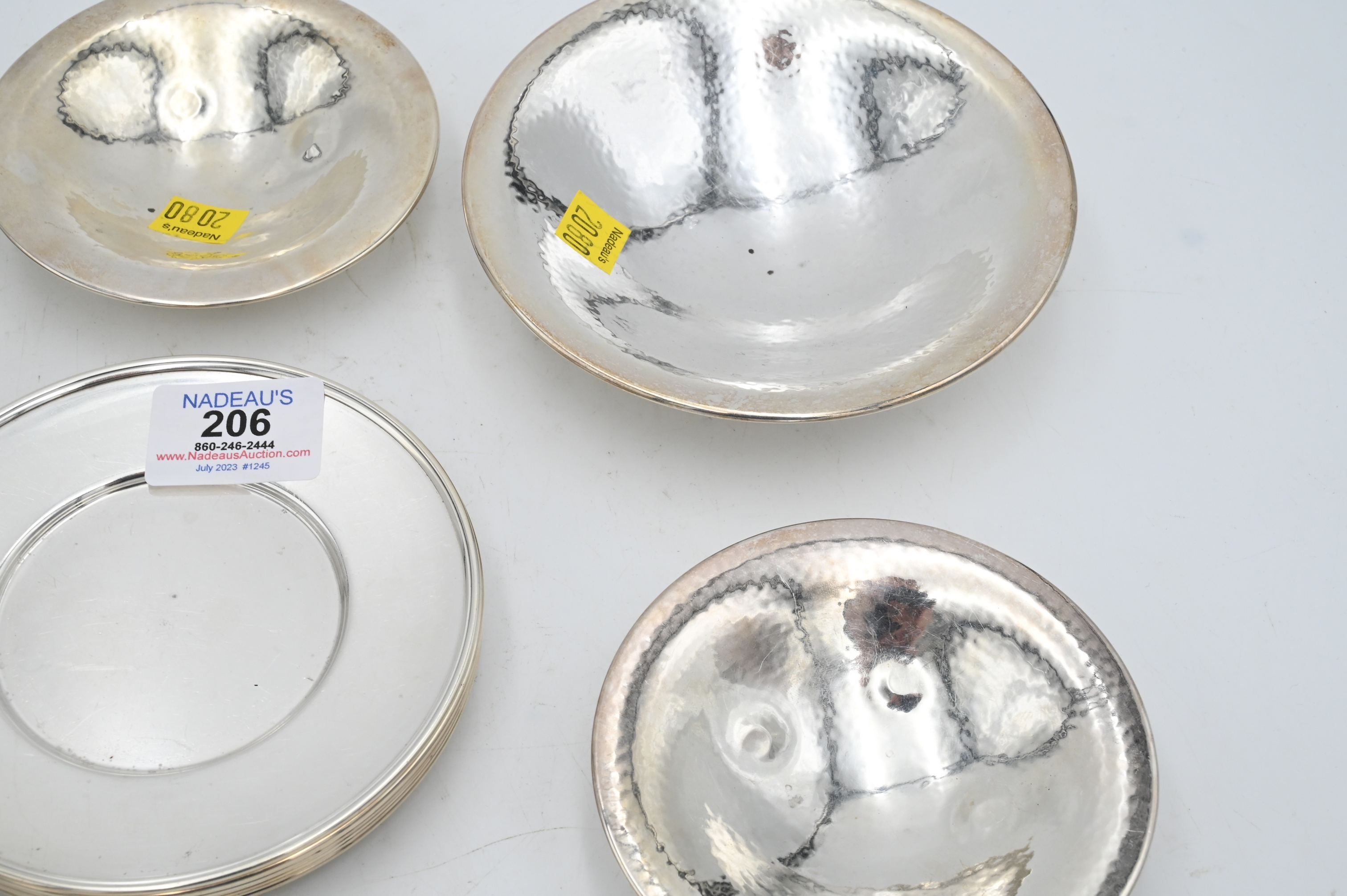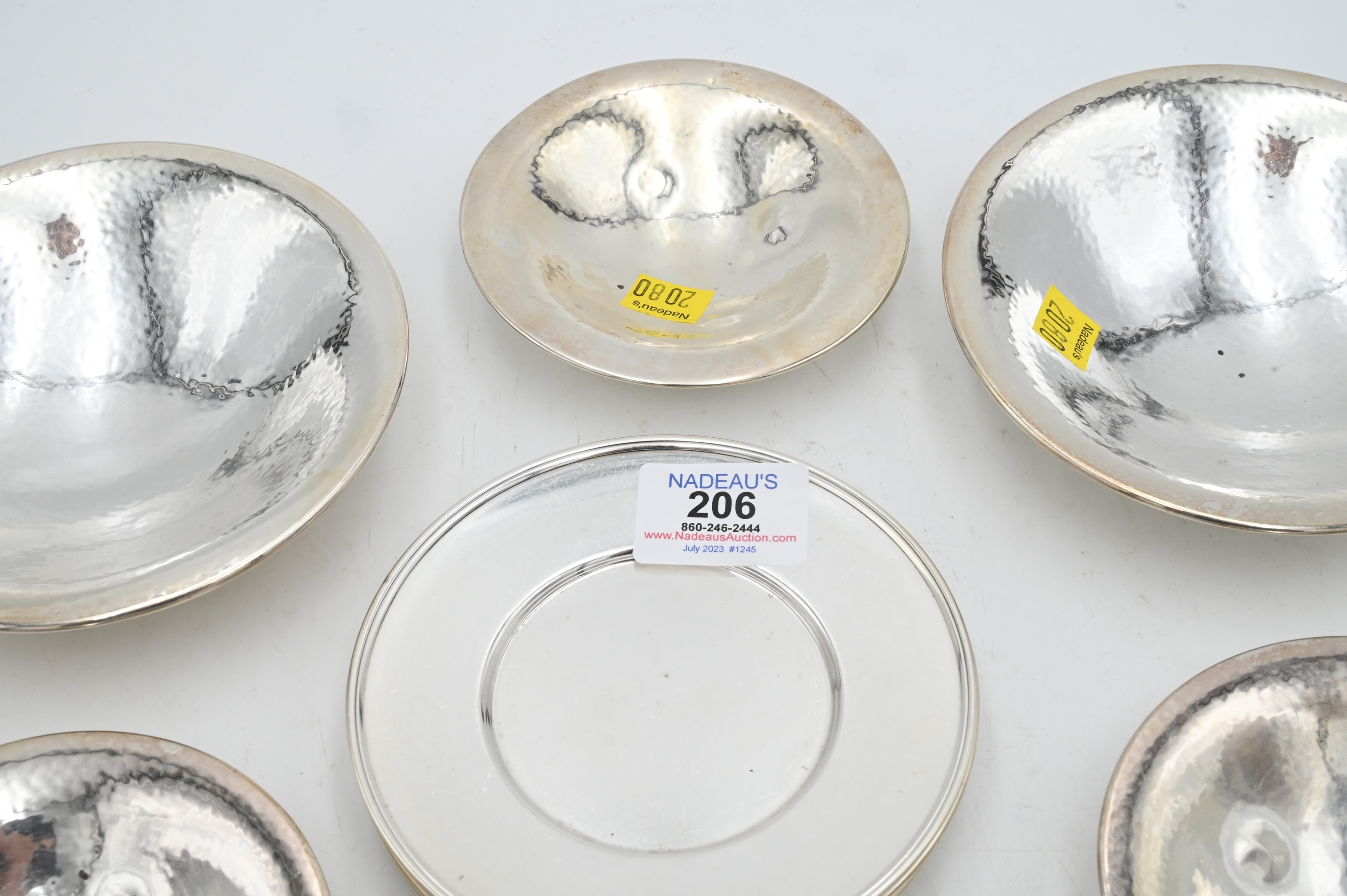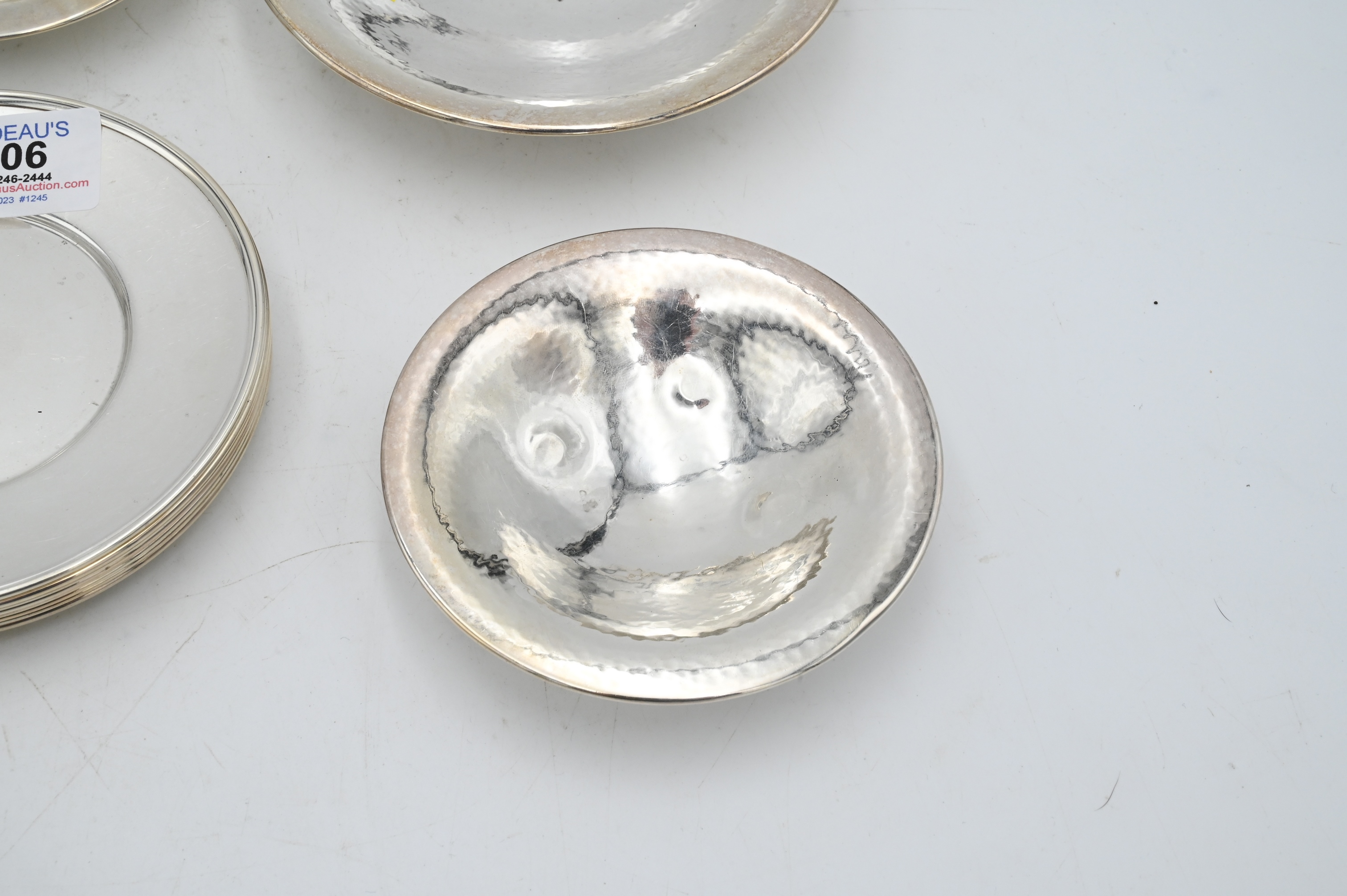 Six Piece Sterling Silver Group, to include five small Ger Friedlander trays, along with eight Steiff bread plates, largest diameter 5 1/2 inches, 34.3 t.oz.